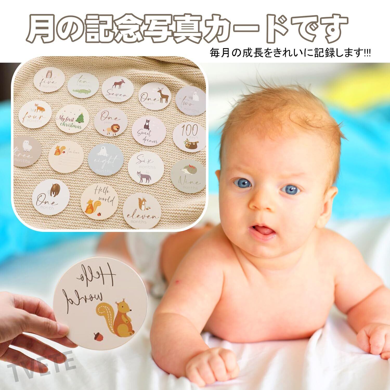 TVETE 月齢フォト 月齢フォトグッズ 【18枚セット】動物のテーマ かわいい漫画 アニマルプリント 新生児 ベビー 成長の記録 記念写真 周年 出産祝い カメラツール