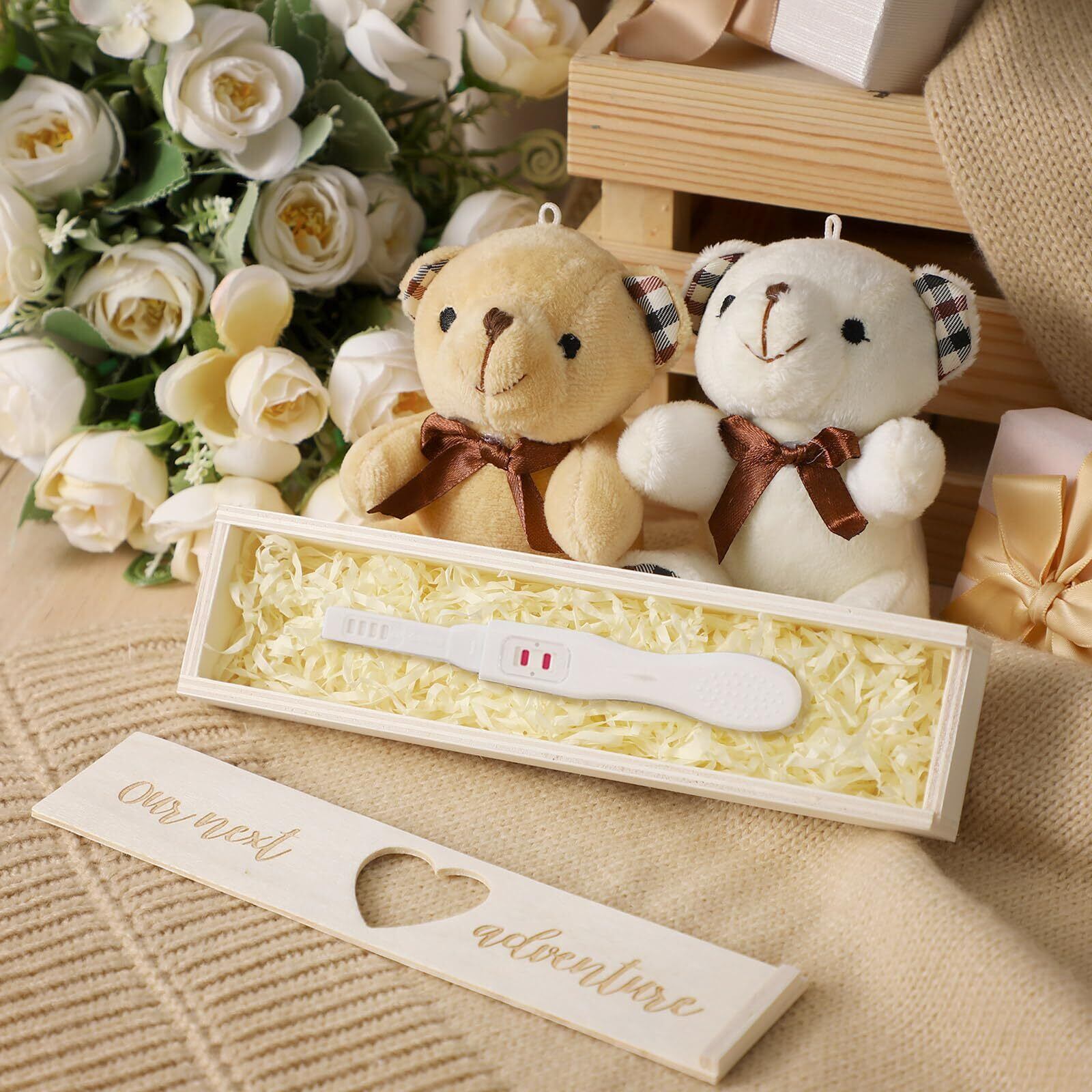 Barydat 妊娠検査 ギフトボックス 記念箱 妊娠のお知らせ 夫への木製ベビー発表 サプライズアイデア テストホルダー 赤ちゃんのお土産ギフト お父さん、おばあちゃん、祖父母(ホワイト)