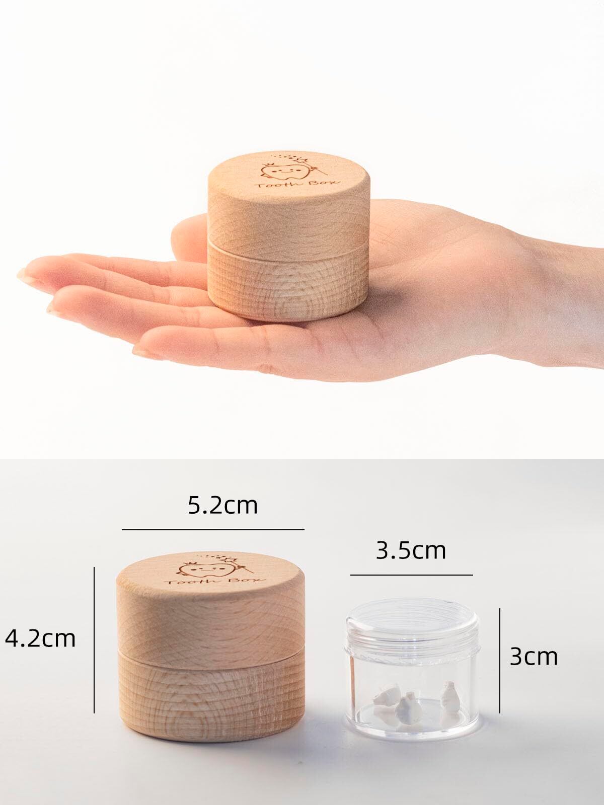 【乳歯ケース サイズ】素材:天然木 サイズ:直径5.2cm高さ4.2cm カラー:木の色 本製品はベビーの乳歯とうぶ毛の保管ケースです。ミニサイズで軽量、引っ越しするときにも携帯便利です。