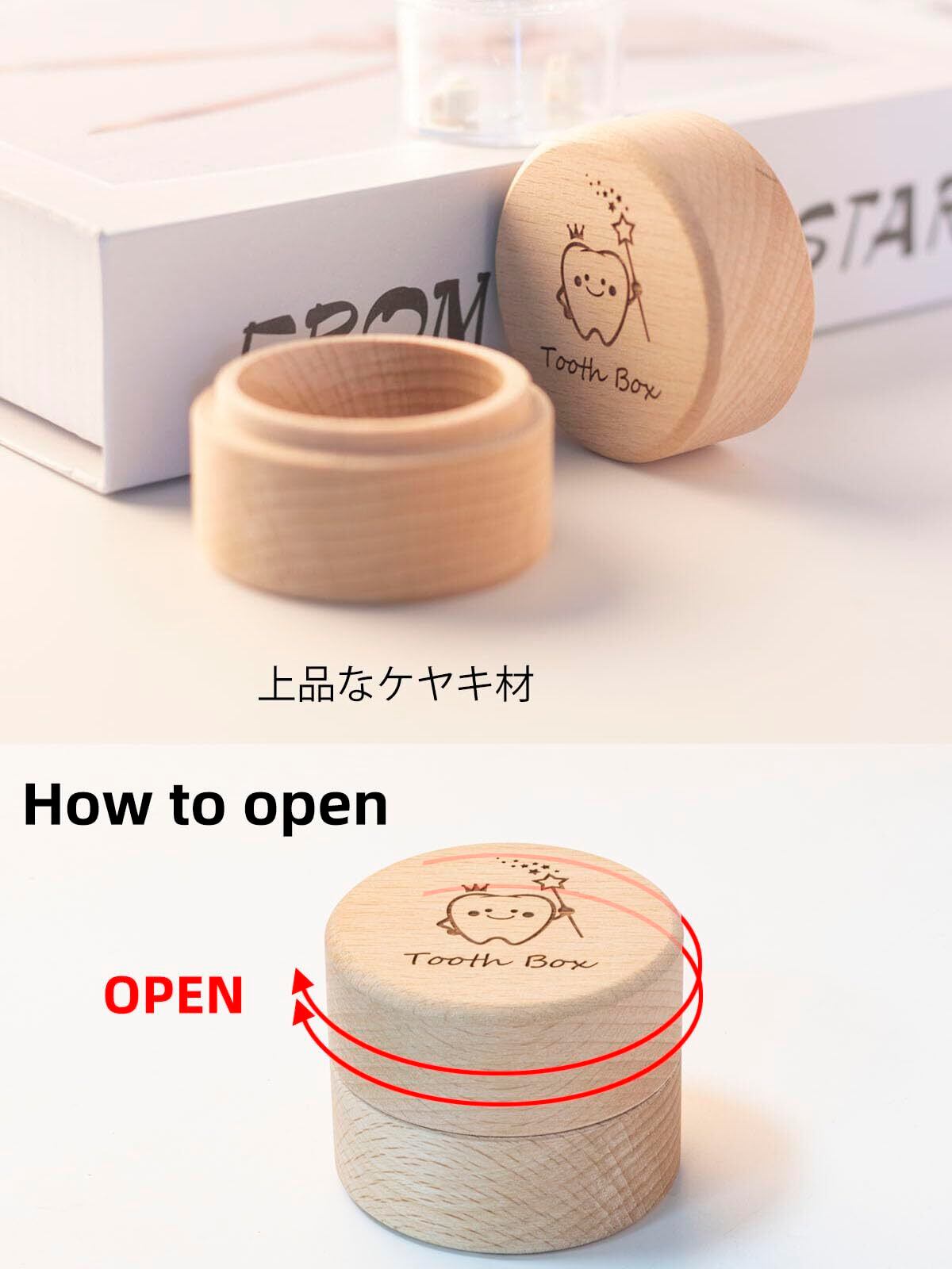 【上品なケヤキ材】天然、高品質な木で仕上げた高品質な歯箱は防湿や防虫や耐腐食に強くて耐衝撃性も抜群。乳歯を長時間に保存できます。▶︎高品質の透明ボトル付きで、湿気やカビを防ぐ。木製なので倒れて壊れる心配がありません。地震などで落下しても割れてしまう心配がありません。