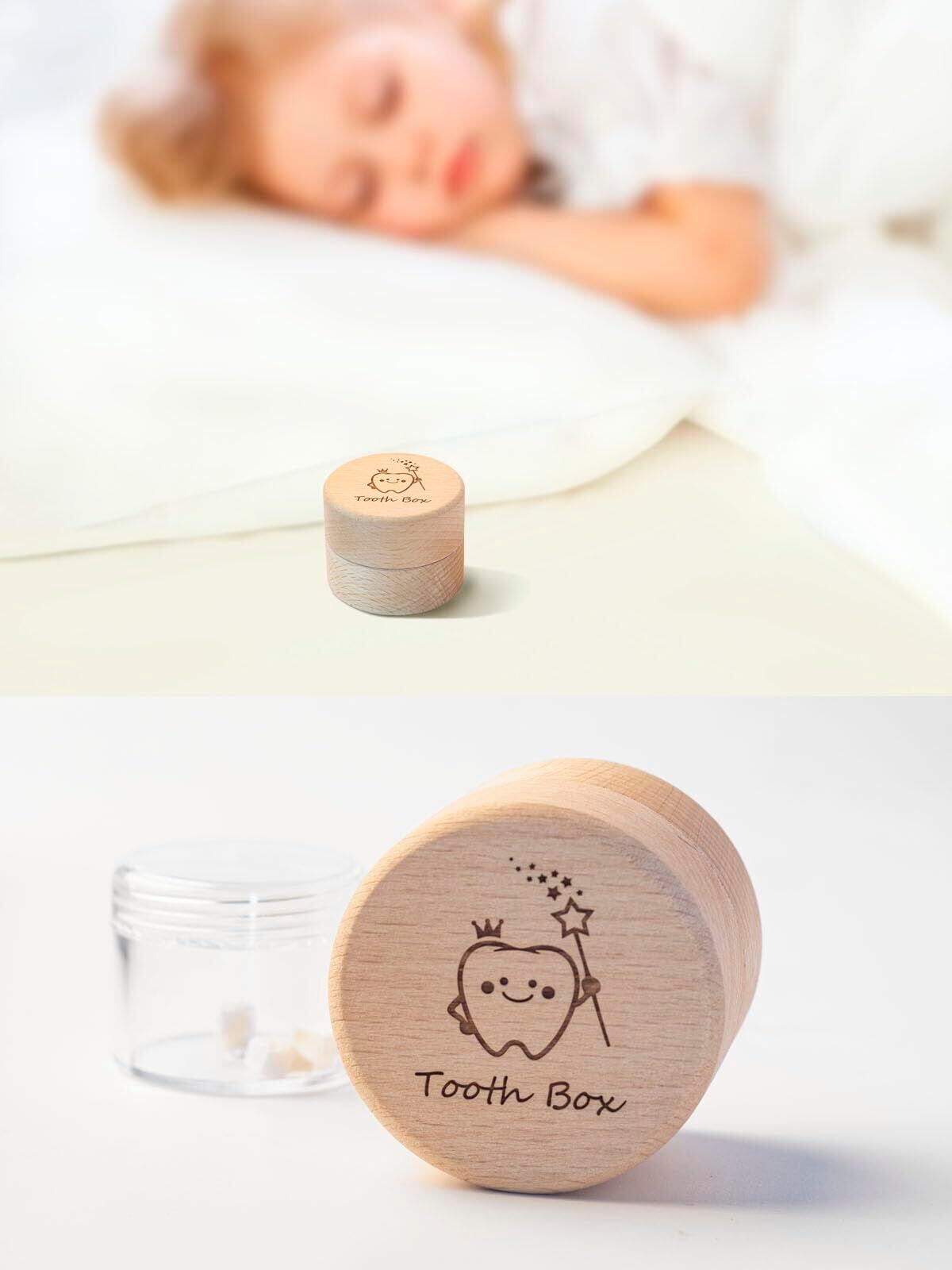 iwoohome 乳歯ケース【湿気やカビを防ぐ】 乳歯入れケース 木製+アクリルボトル 男の子/女の子 ベビートゥース 出産祝い ギフト 子供 歯 保管 収納 記念な乳歯 成長記念品 (ラスティック, 木の色)