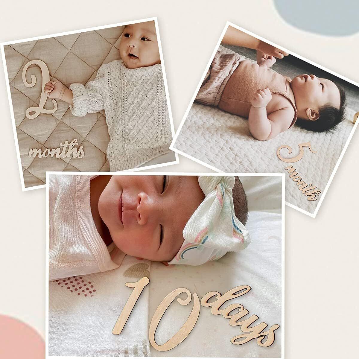 【成長記録】日、週、月、年のマイルストーンをマークする木製彫刻、赤ちゃんのお誕生に応じて自由に組み合わせてパーソナライズしていただけます。妊娠期から出産後まで、すべてのマイルストーンになるお子様の成長を記録できるし、すばらしい精美な芸術作品を創作できます。