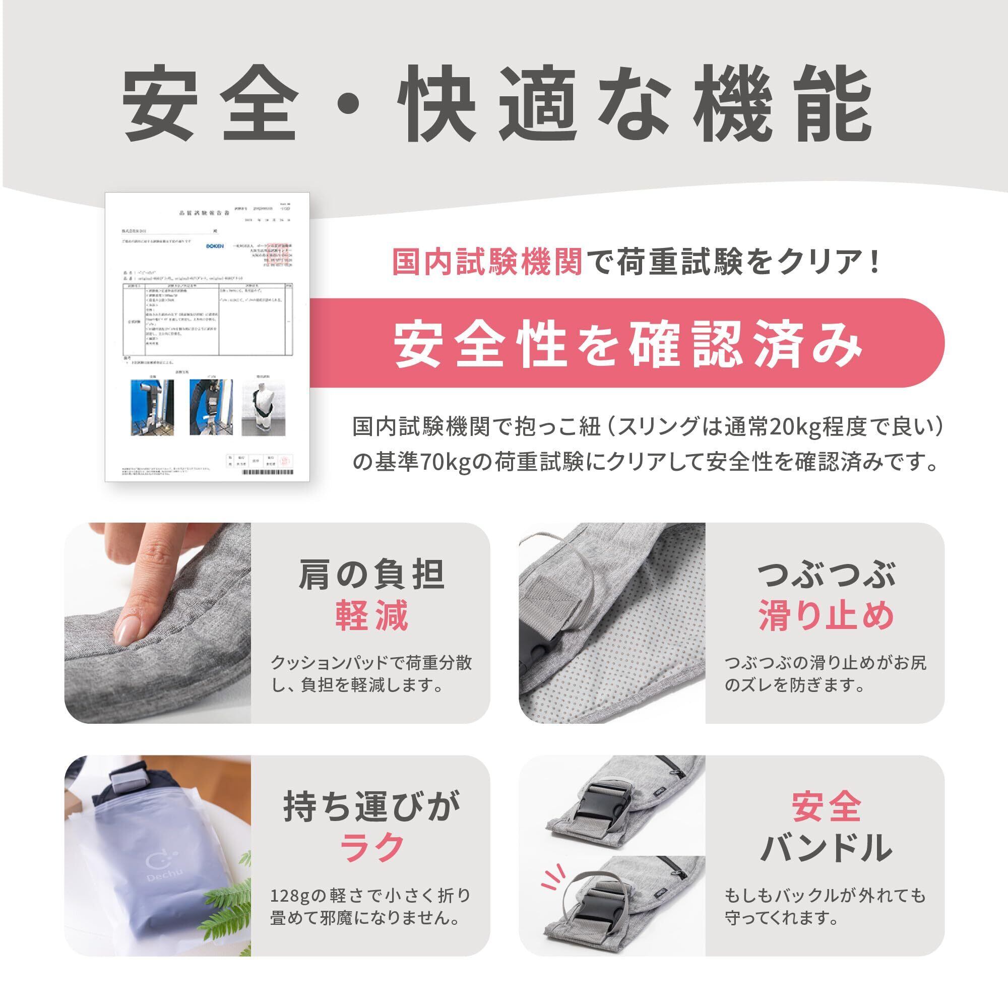 【国内検査機関試験済】安全にお使いいただけるよう、国内検査機関にて「 耐荷重試験」を実施し基準をクリアしています。【保育士さん推奨】小さい子供に関わるお仕事のプロからの推奨スリングなので安心です。