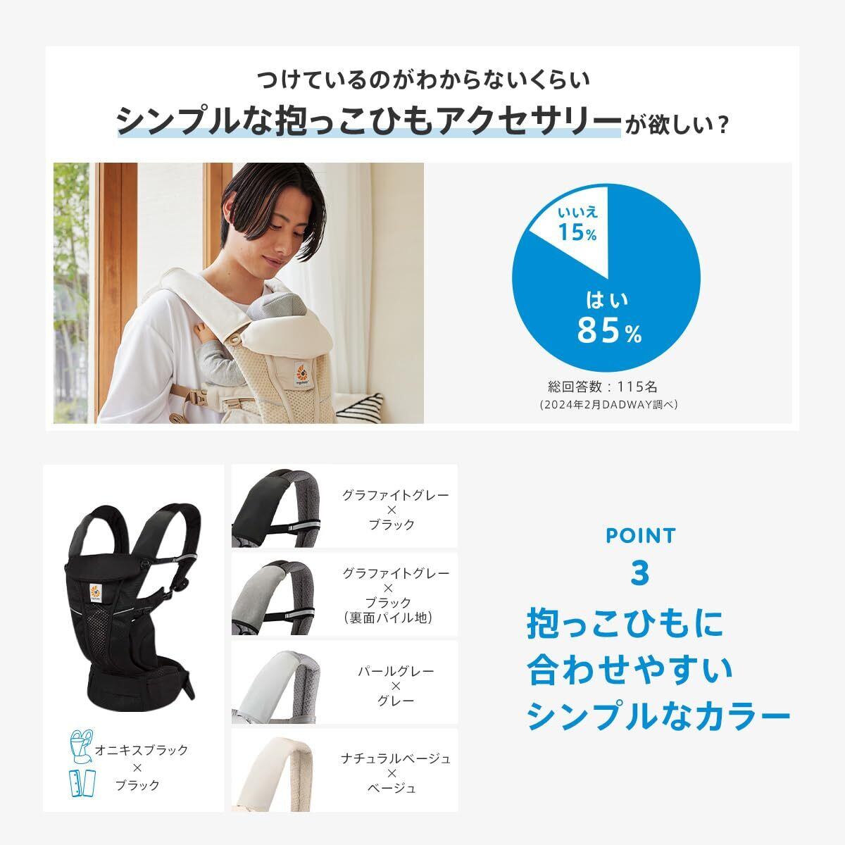 抱っこひもをキレイに保つ必需品。 赤ちゃんは肩ひもをなめたり噛んだりするので、ベルトカバーでよだれをキャッチ。 毎日使う抱っこひもを清潔に保てます。 さらっと乾きやすい吸水速乾生地と、ふんわりパイルのリバーシブル。 内側のポリウレタンラミネートコーティングで、染み込みをしっかり防ぎます。 エルゴベビーの抱っこひものために設計された、エルゴベビー公認アクセサリー。