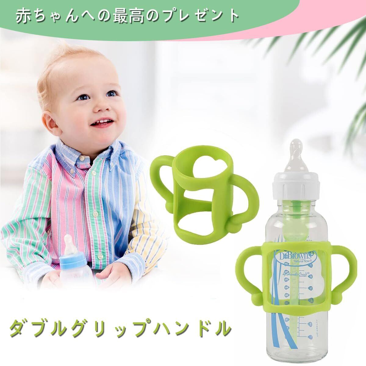 2個セット 哺乳瓶ユニバーサルハンドル 哺乳びん握り 広口グリップ 多色 多機能 耐熱 シリコン ソフトハンドル 持ちやすい 赤ちゃん 付け替え用 哺乳瓶アクセサリー(ホワイト+グリーン)