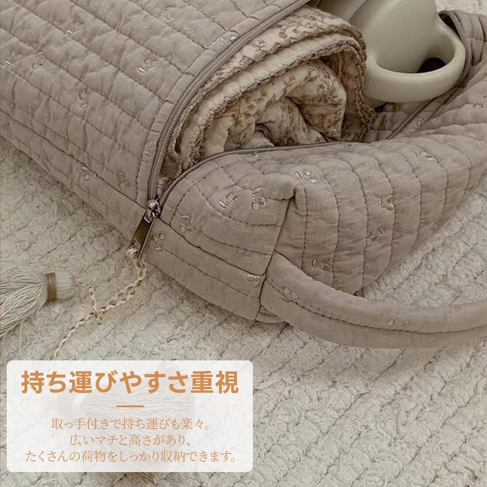 【持ち運びやすさ重視】取っ手付きで持ち運びも楽々。広いマチと高さがあり、たくさんの荷物をしっかり収納できます。