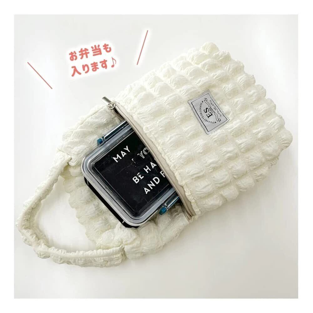 【おしゃれな哺乳びんポーチ】独特なポコポコ/ポップコーンっとした生地でシンプルな手持ちバッグが一気に華やかに印象に。