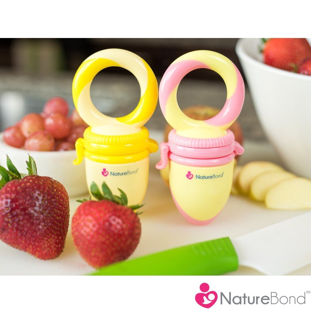 離乳食フィーダー 赤ちゃん用 フルーツ おしゃぶり 食事用 果物・野菜 (ピーチピンク&レモネードイエロー) | NatureBondネイチャーボンド