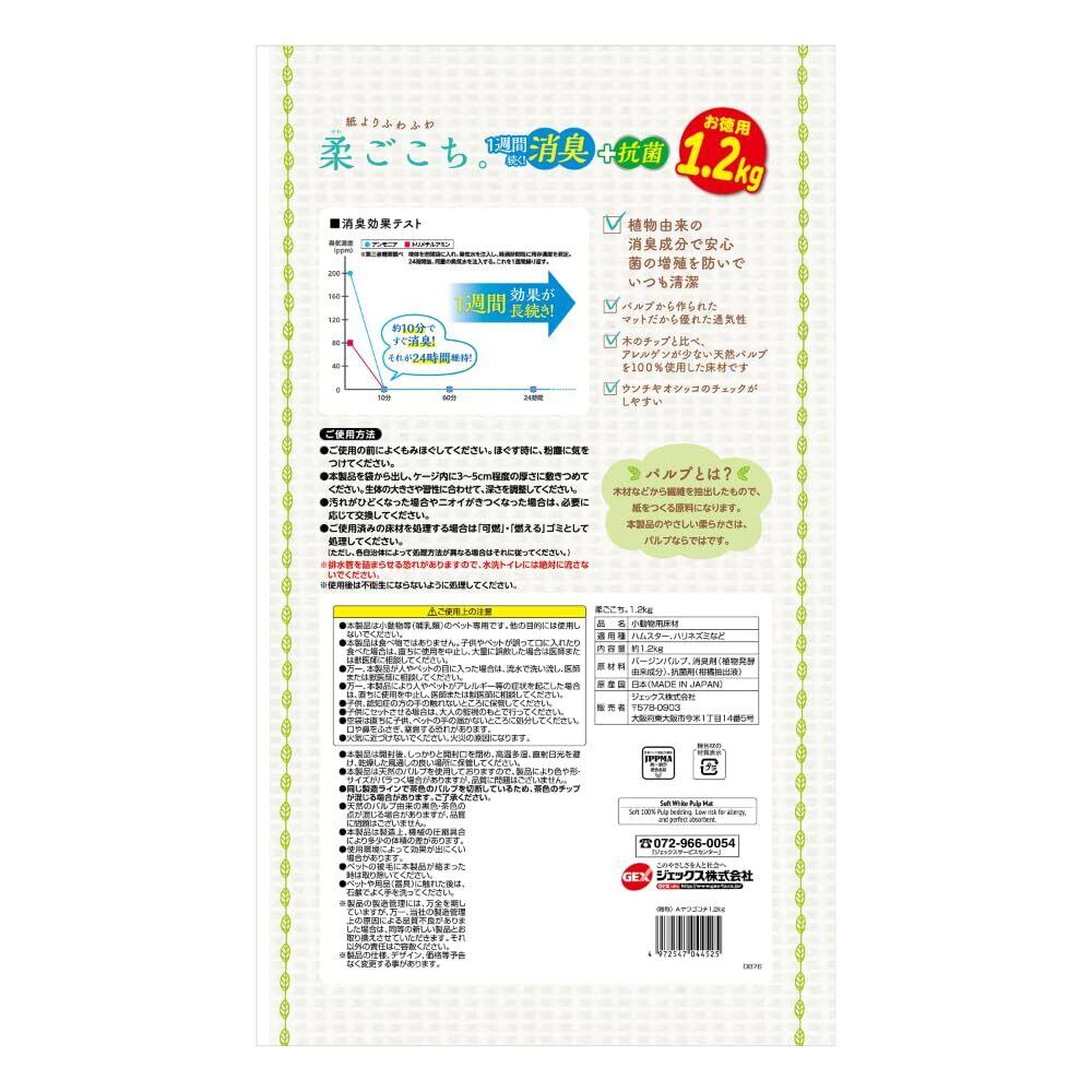 ジェックス 柔ごこち 1.2kg 紙よりふわふわ ホワイトパルプマット 天然広葉樹パルプ100% 消臭+抗菌 床材 ハムスター・小動物用