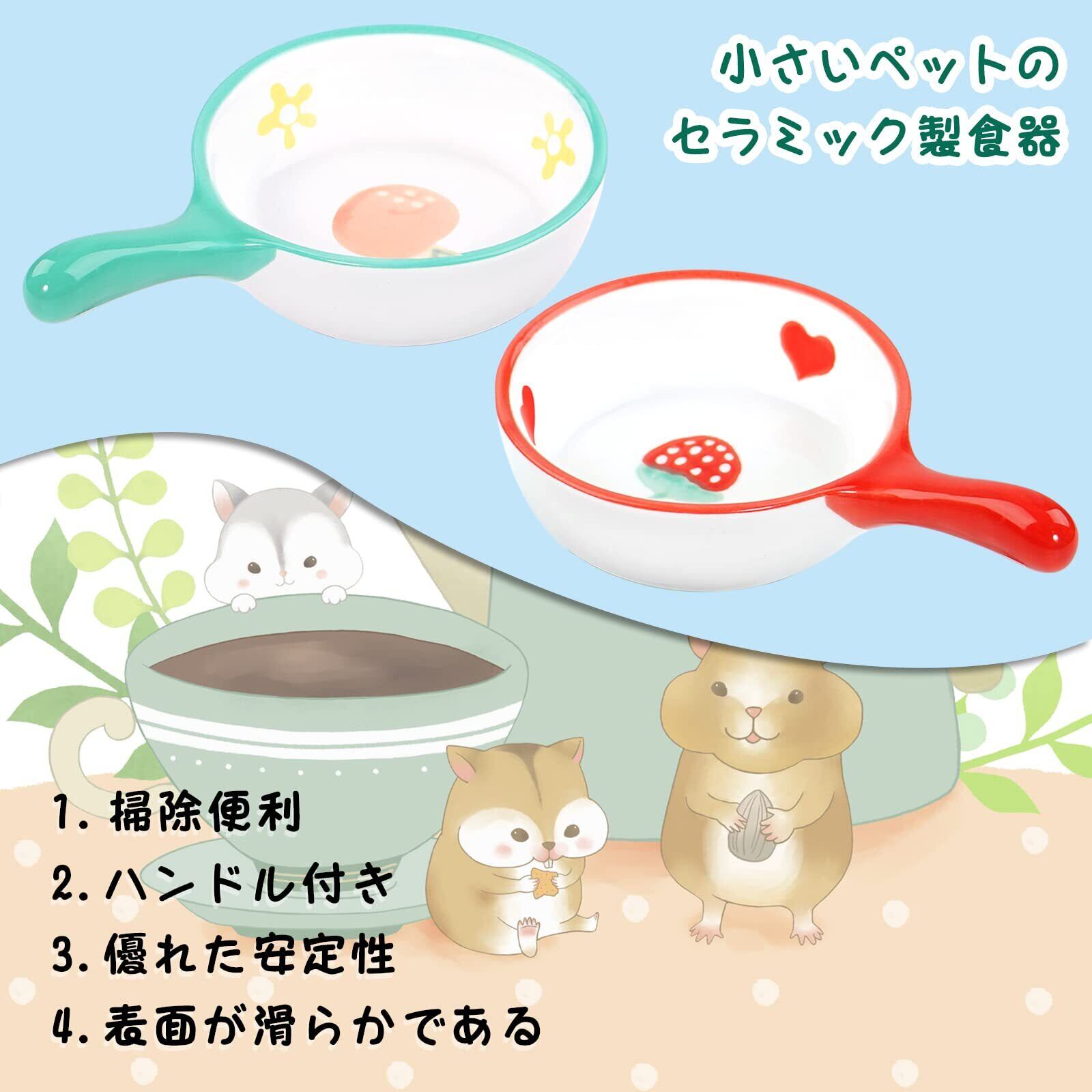 ハムスター 餌入れ 食器 小動物用 2個入り 陶器製 えさ皿 ペット食器 ペットボウル モルモット モモンガ 水飲み えさ入れ セラミック ウォーターボウル ミニ (いちご+りんご)