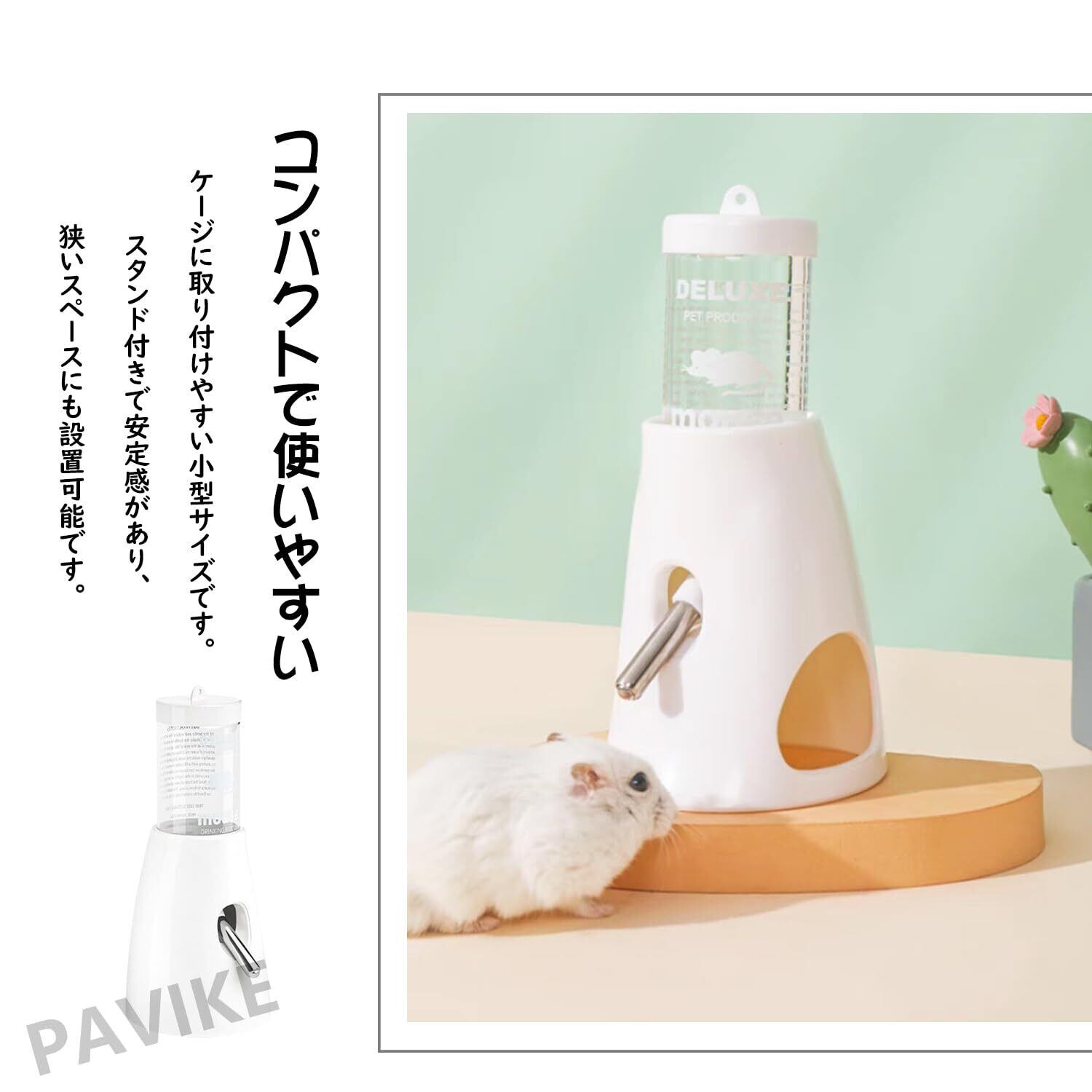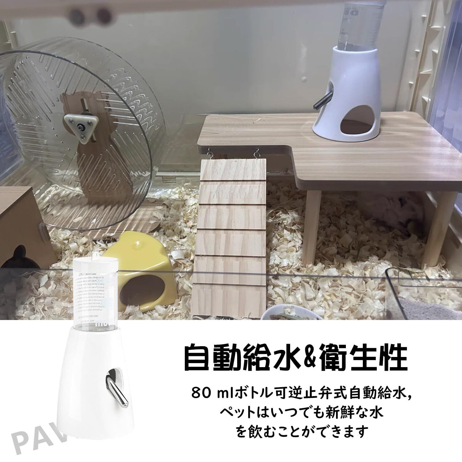 PAVIKE 小動物 給水器 ペットボトル ハムスター 給水器 うさぎ 水入れ 置き型 大容量 省スペースデザイン 電源不要 みずのみ器 熱中症を防ぐ 転倒防止 漏れ防止 ペット用品(80ml)