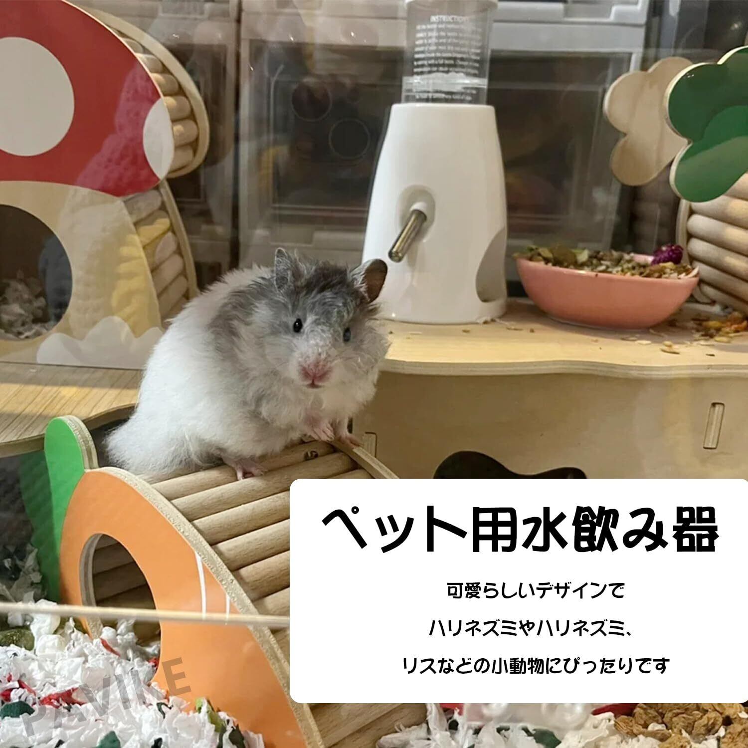 多機能な内装アイテム:給水ボトルと隠れ家が一体化されたマルチファンクションデザイン。ケージ内のレイアウトを自由にアレンジでき、ペットの好奇心を刺激しながら、実用的な給水機能を発揮します。