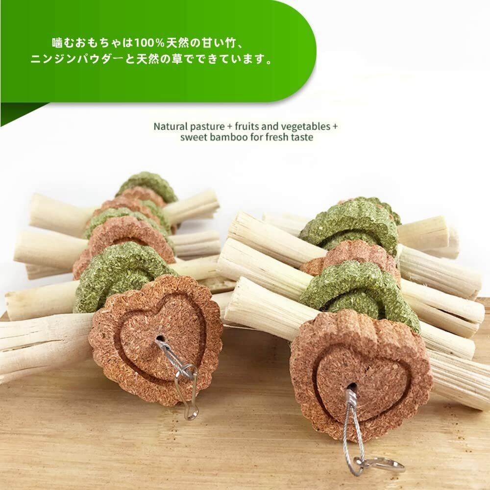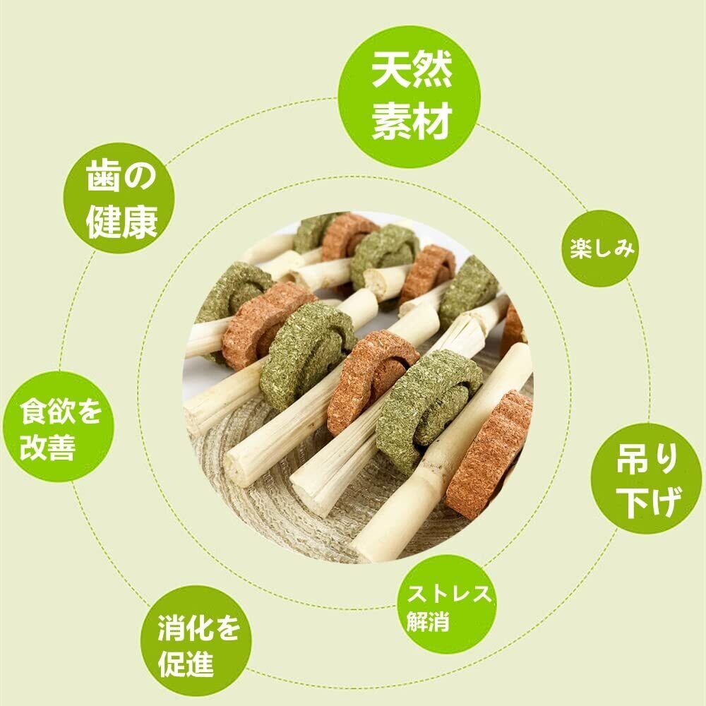 【100%天然素材】:噛むおもちゃは100%天然の甘い竹、ニンジンパウダーと天然の草でできています。手作りで他の化学物質はありません。すべてのペットにとって安全です。小動物が噛んで消化しやすく、腸の蠕動運動を促進し、ペット食欲を改善します。