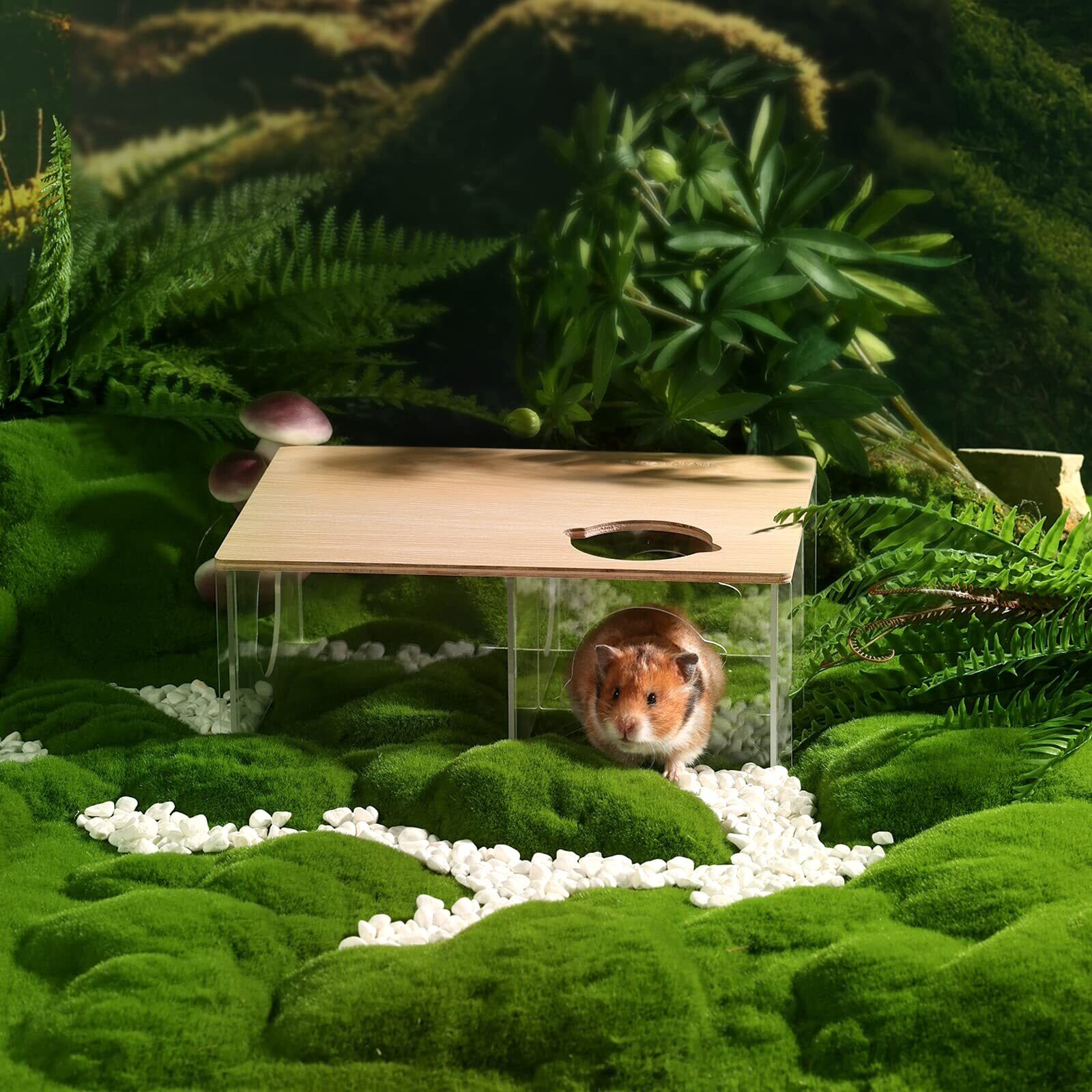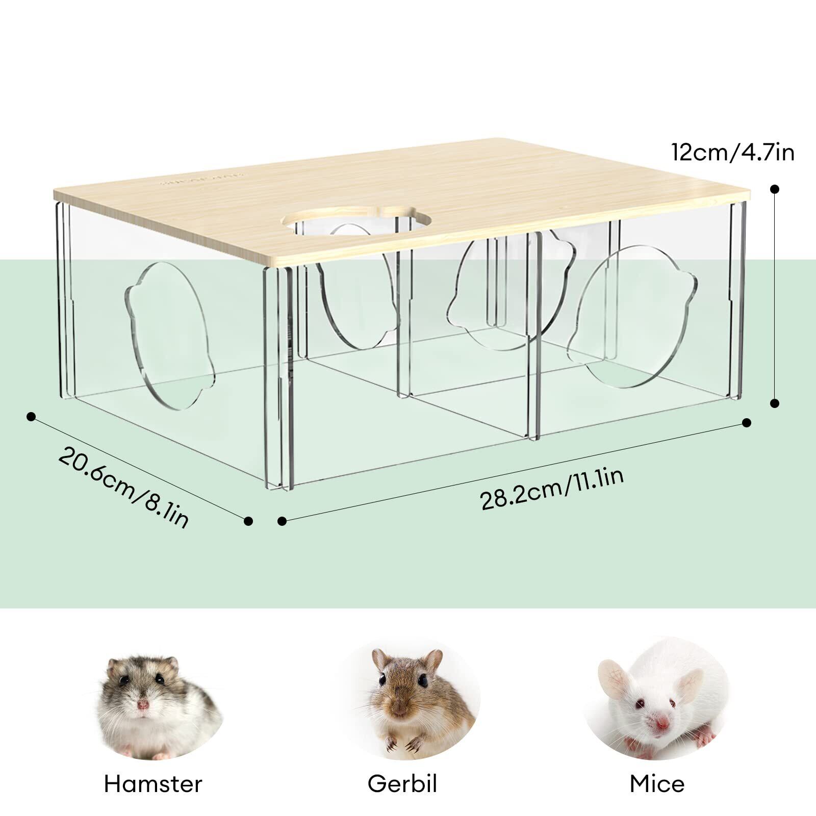 BUCATSTATE ハムスター クリア ハウス 三室 透明 底板なし 多機能 研磨仕上げ 取り付け簡単 ほぞ継ぎ構造 自由に組み合わ 遊び場透明 屋根付き ハウス ジャンガリアンハムスター キンクマハムスター ロボロフスキーハムスター適用 28*21*12cm
