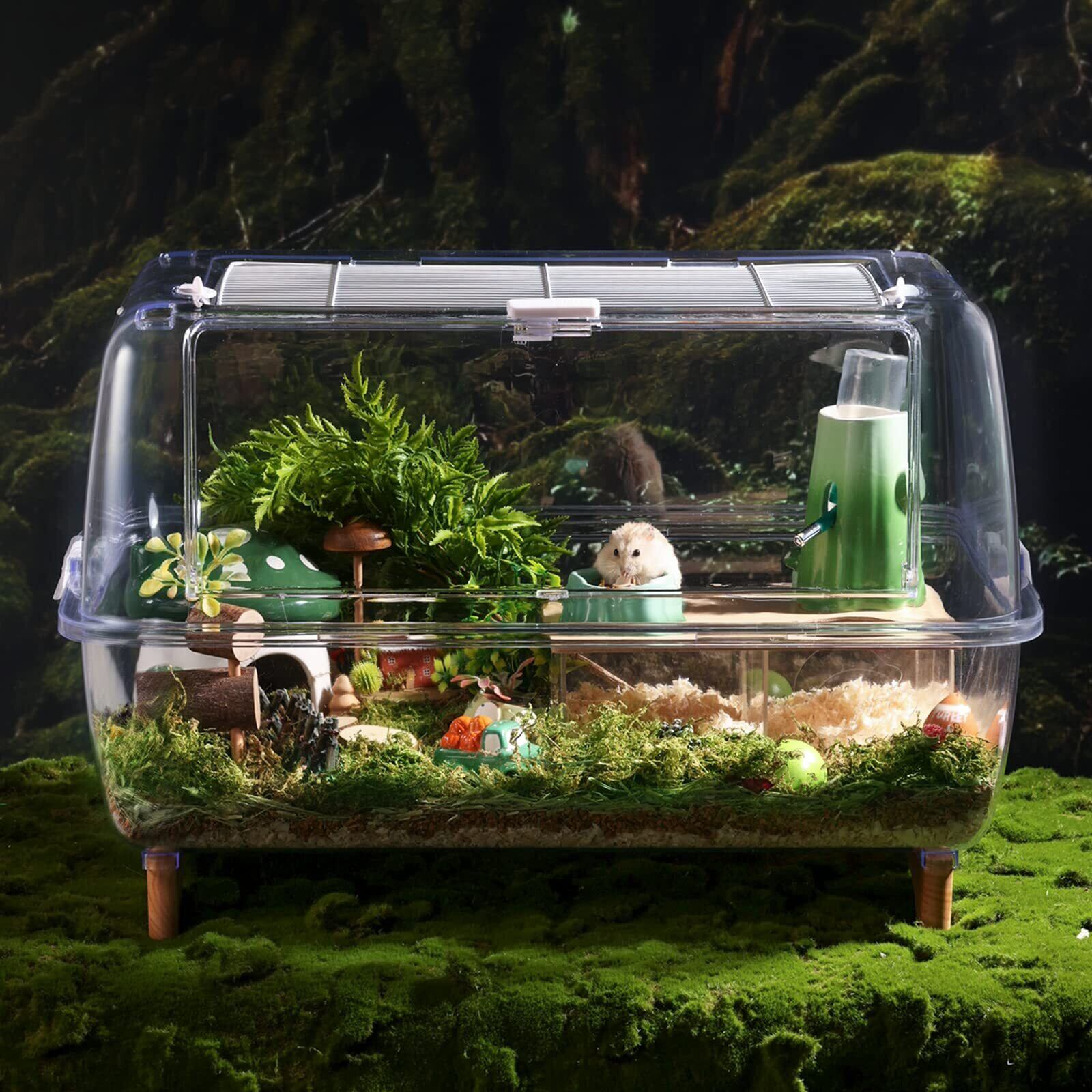 【クリアハウスで見えやすい】クリアタイプは中のハムスターがしっかり観察できます。透明色なのでケージ内のインテリアになじみやすい。ご注意: このアクリルのハウスは全透明です。すべでのアクリルパネルには保護シールが貼ってあります。シールを剥がすと取り付けて使用してください。