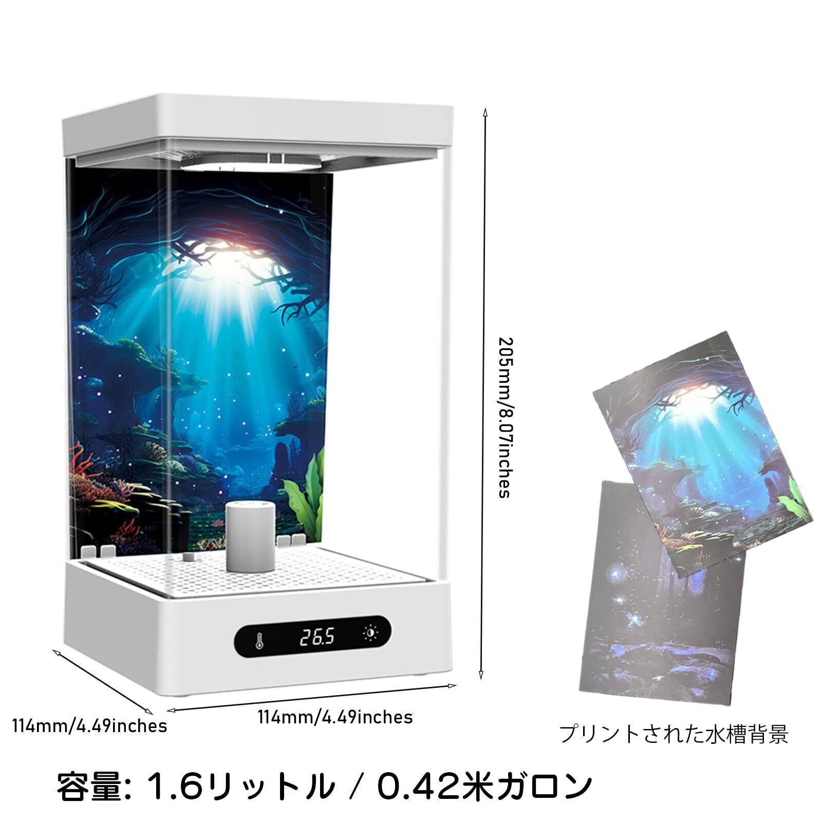 小型ベタ水槽 1.6L コンパクト 20-30°C温度設定 酸素供給機に接続可能 LEDライト付き 水換え簡単 ホワイト