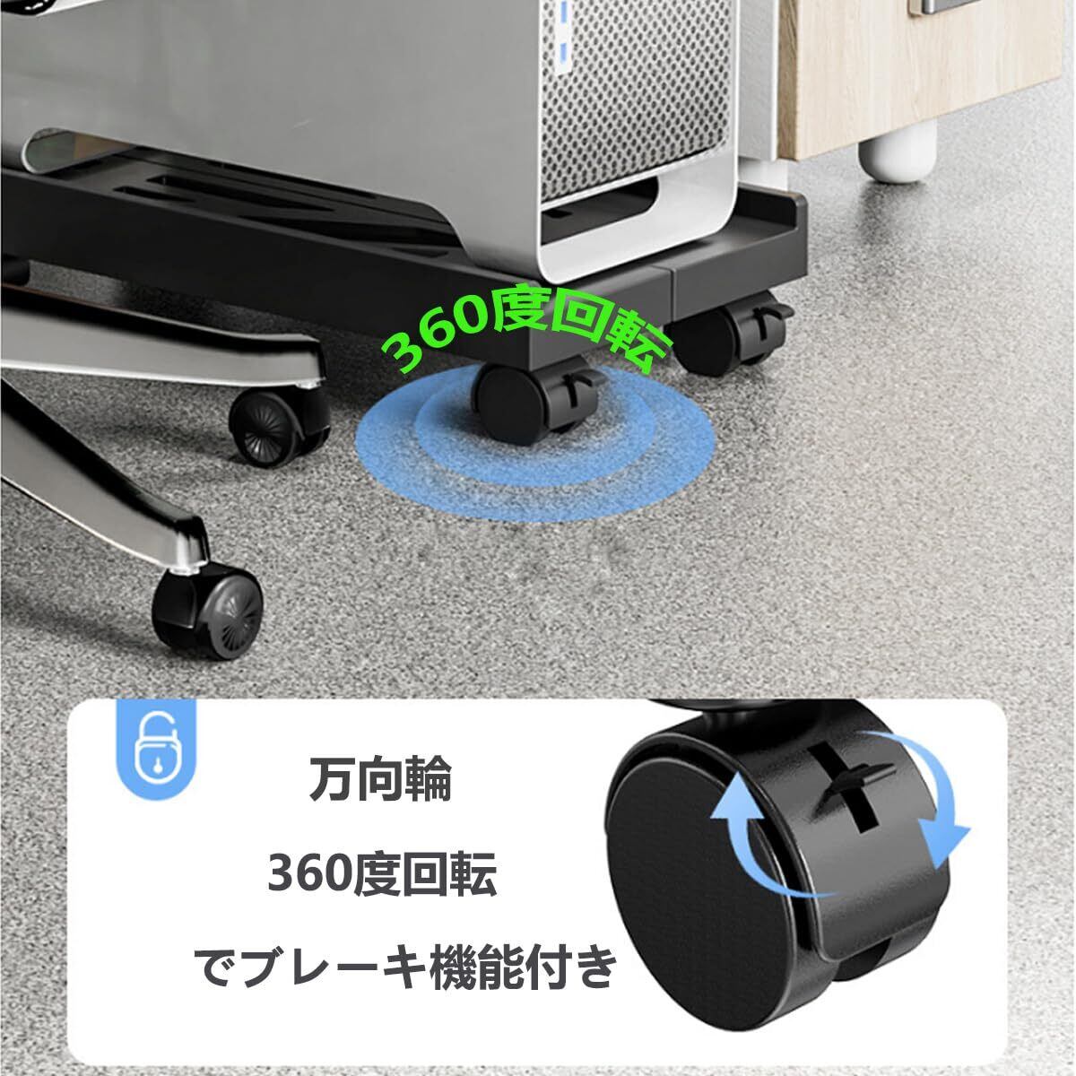 RUI XINキャスター付きCPUスタンド PCキャスター サーバー PC収納ボックス PCワゴ ン デスクトップ用 パソコン 会社 オフィス 自宅 デスクトップ コロ 灰尘对策放熱 落下防止 (Black)