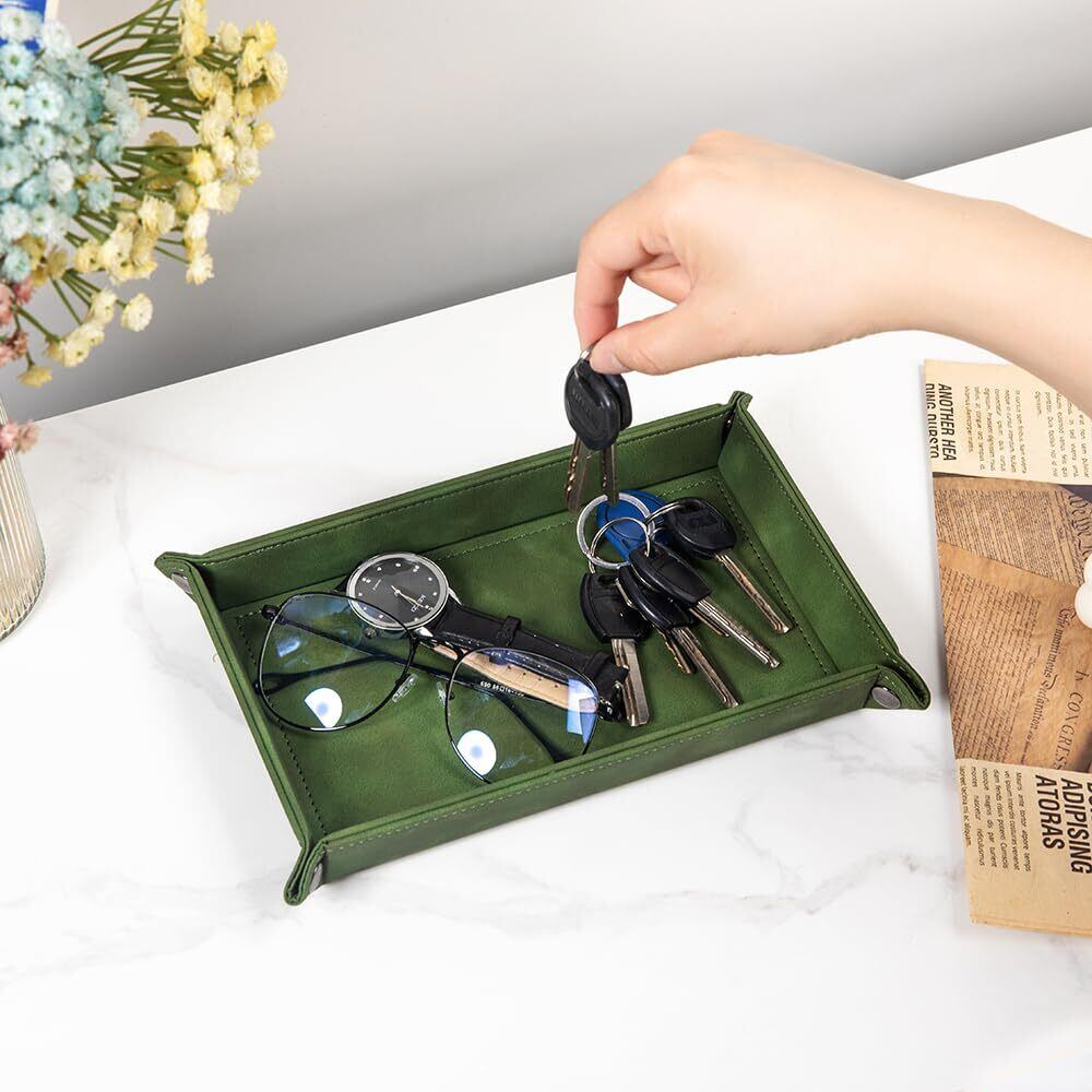 レザートレイ 小物入れ アクセサリートレイ 小物トレー 折り畳み式 こものいれ ボックス 腕時計 鍵 スマホ メガネ アクセサリー リモコン 収納ボックス おしゃれ 携帯便利 Mサイズ