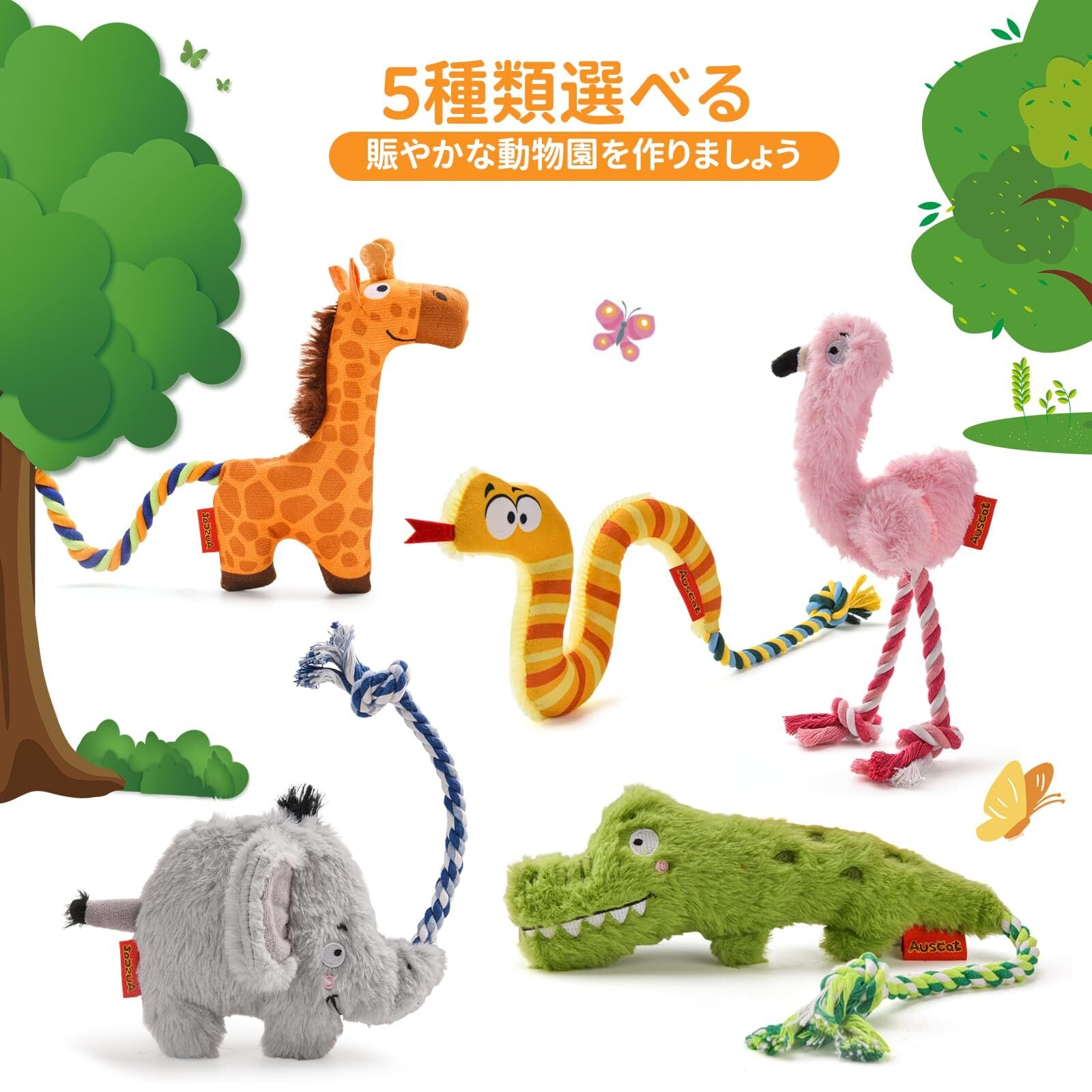 AUSCAT 小型犬 中型犬 犬 おもちゃ ロープ 噛むおもちゃ 頑丈 ロングぬいぐるみ 音が出る 犬用おもちゃ ひっぱりっこ 子犬 蛇&キリン