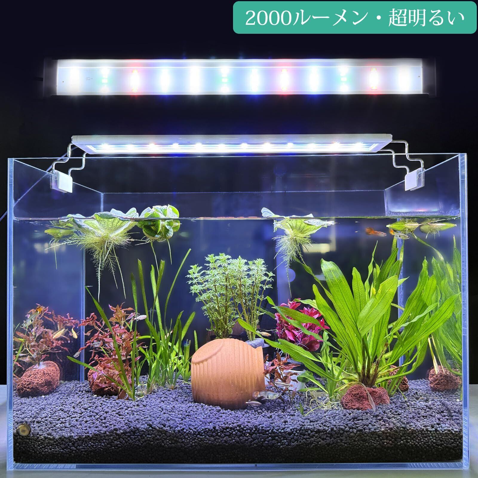 このFEDOUR40㎝水槽LEDライトは、水槽幅40~60㎝のフレームレス/枠付水槽に適しています。パワー15W、色温度6500 K、2000lm超高輝度。水草の成長、水槽の照明に適用します。
