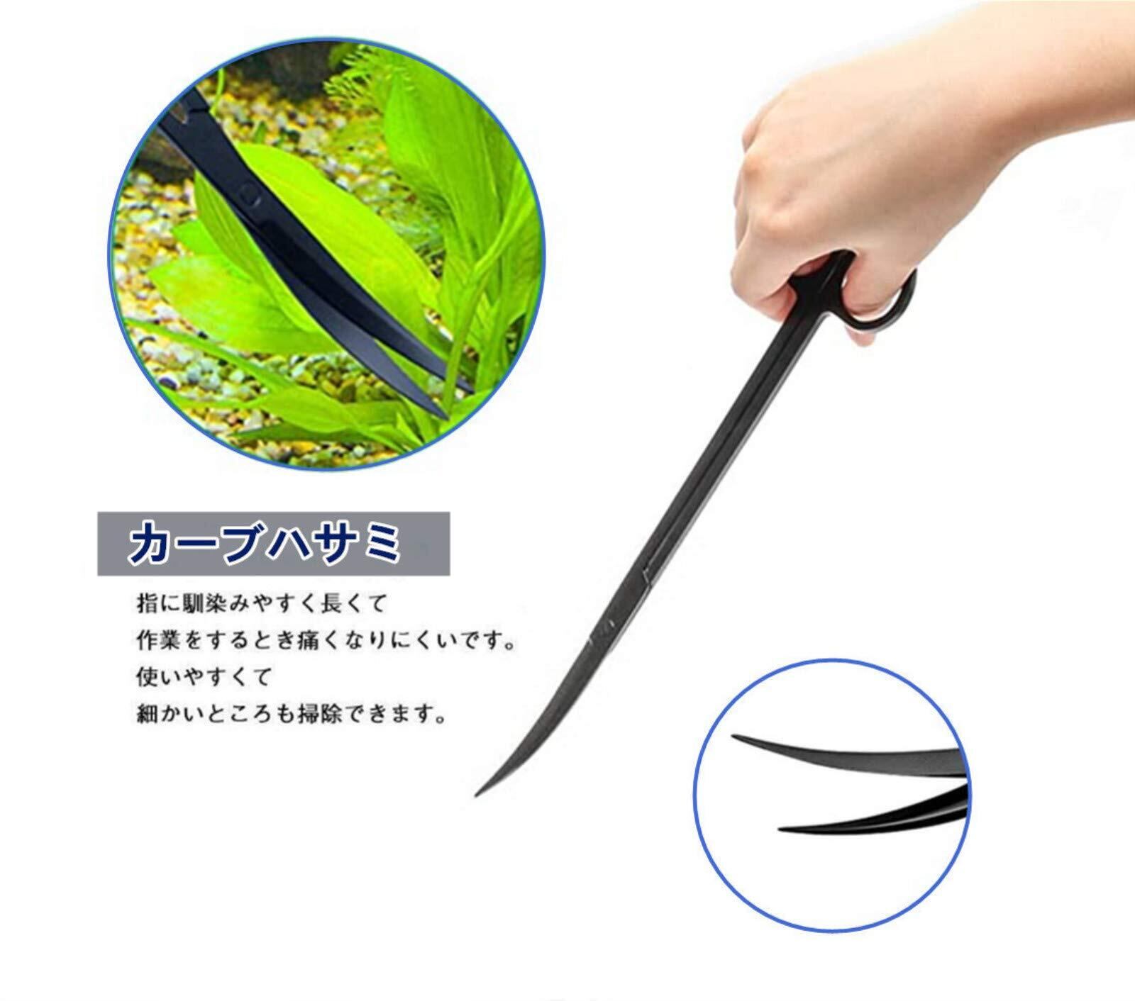 【パッケージ内容】: 水草用トリミング用具:カーブハサミ25cm×1、ストレートピンセット27cm×1、カーブピンセット27cm×1、 合計3点セット。