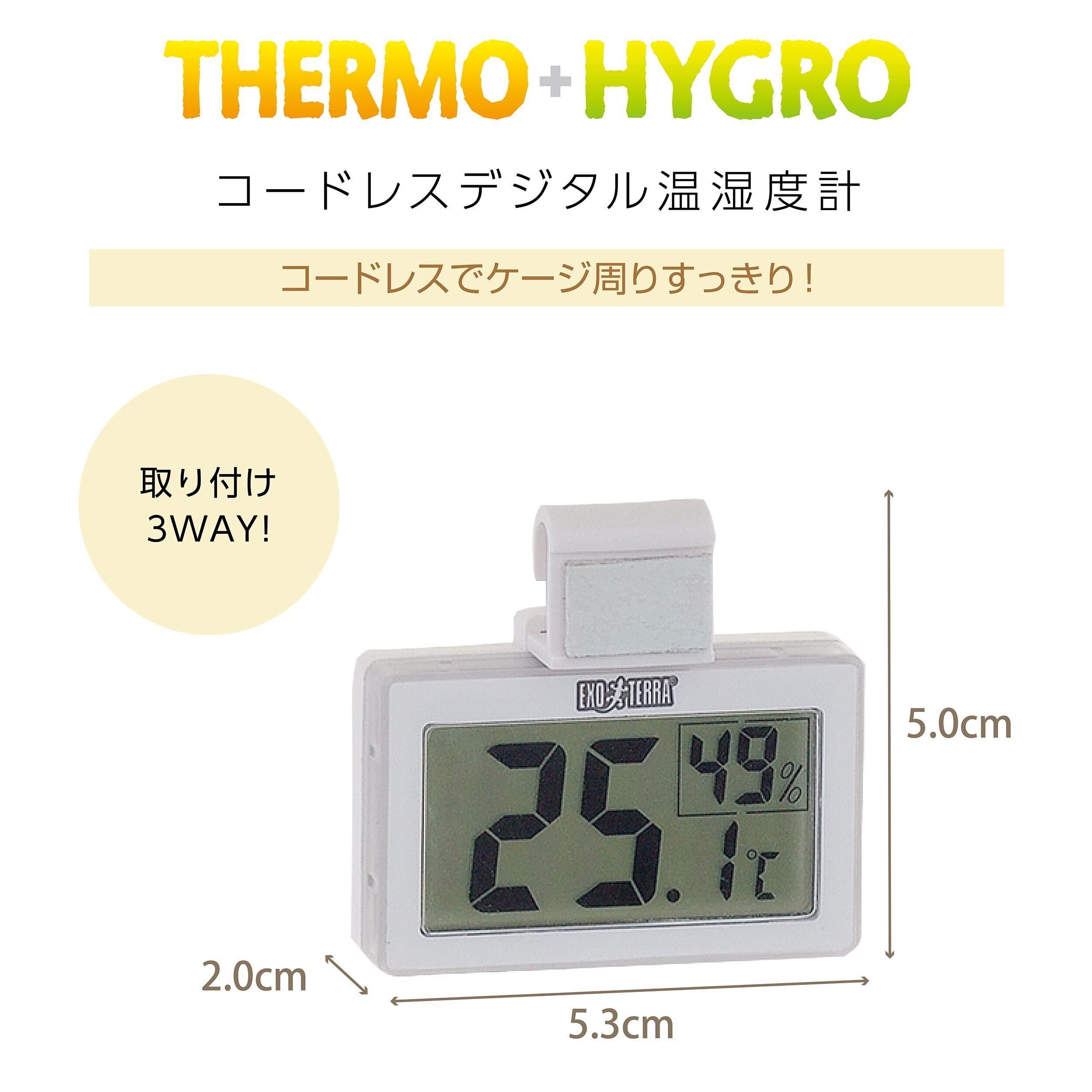 エキゾテラ GEX EXOTERRA コードレスデジタル温湿度計 3WAY設置OK ワイヤーケージにも [爬虫類用 ]