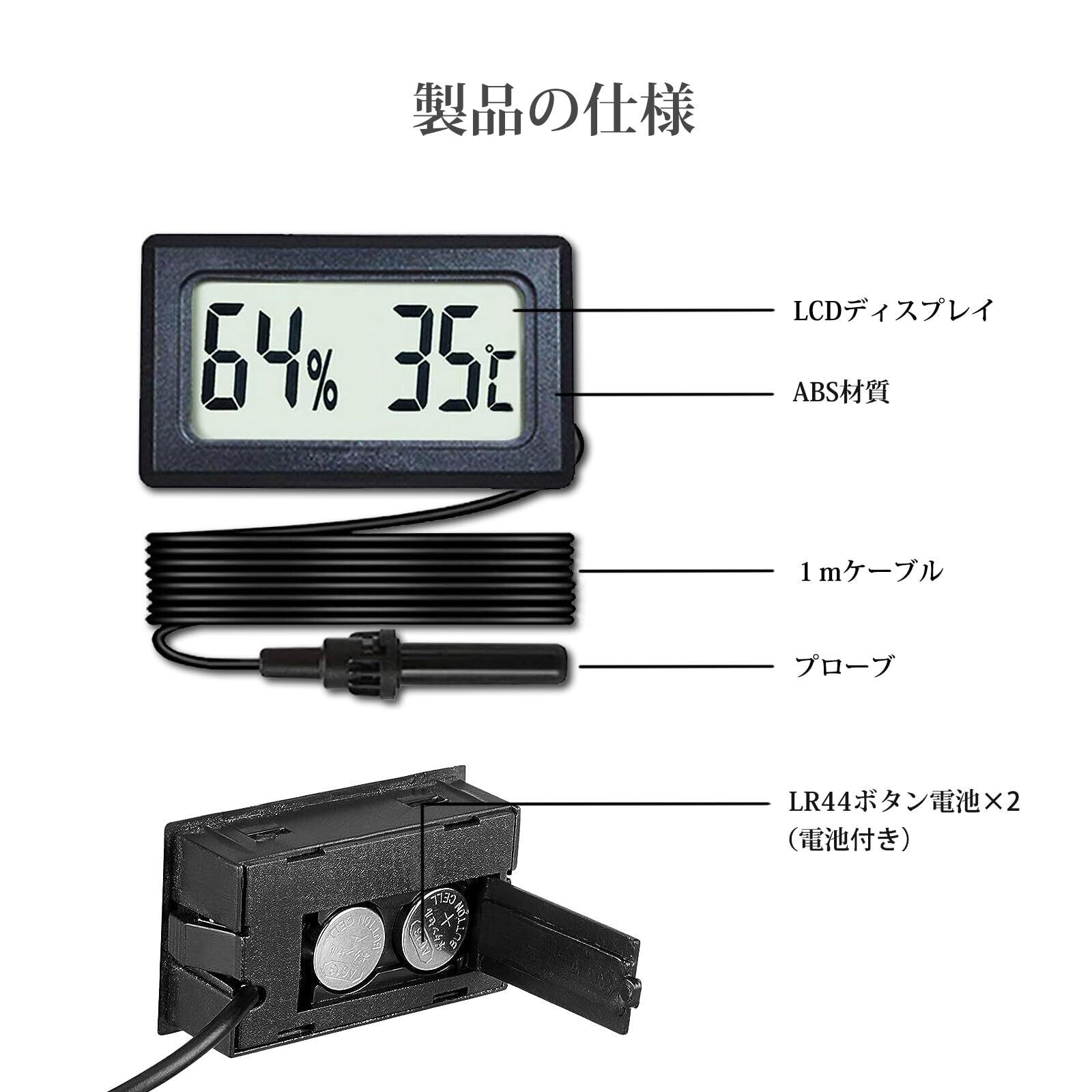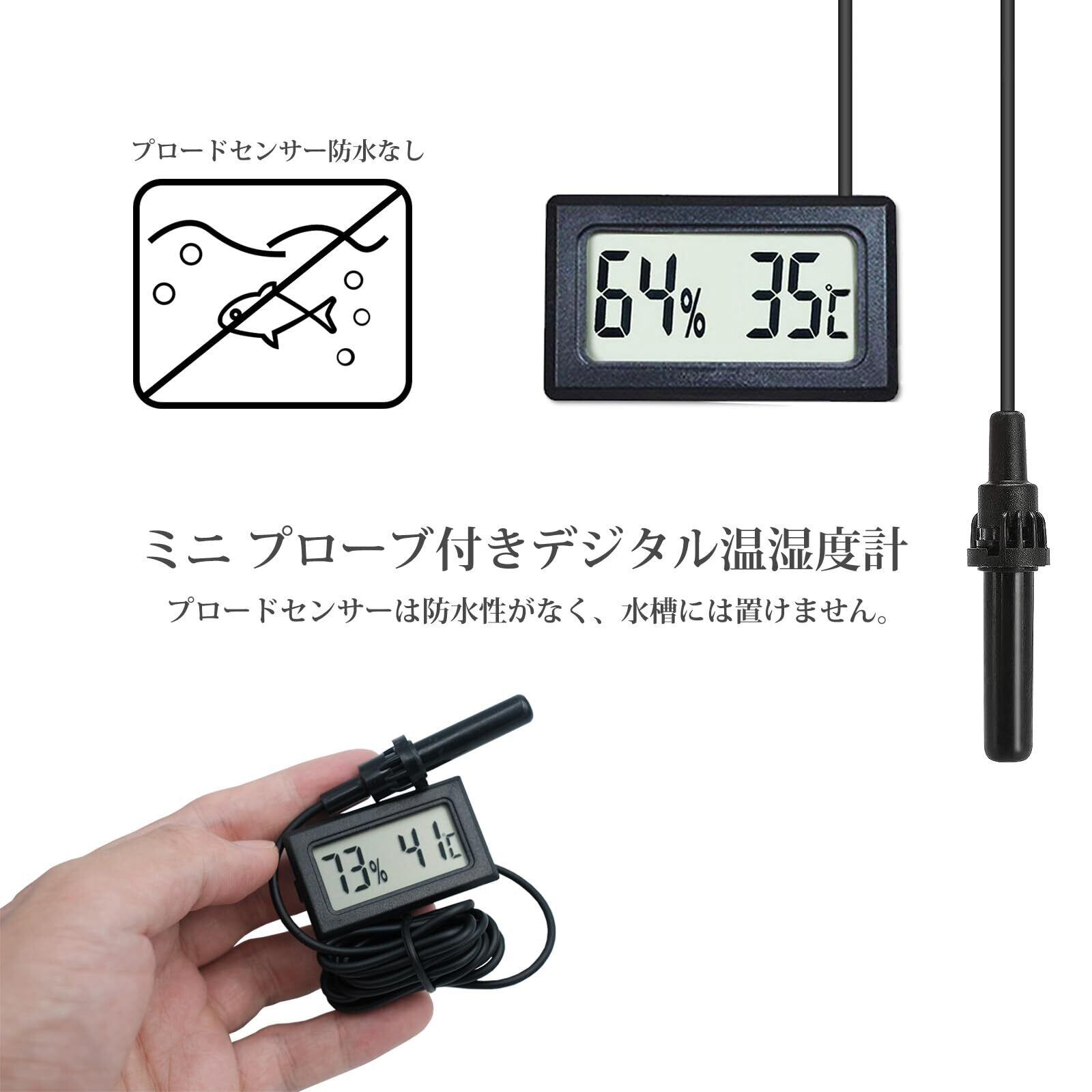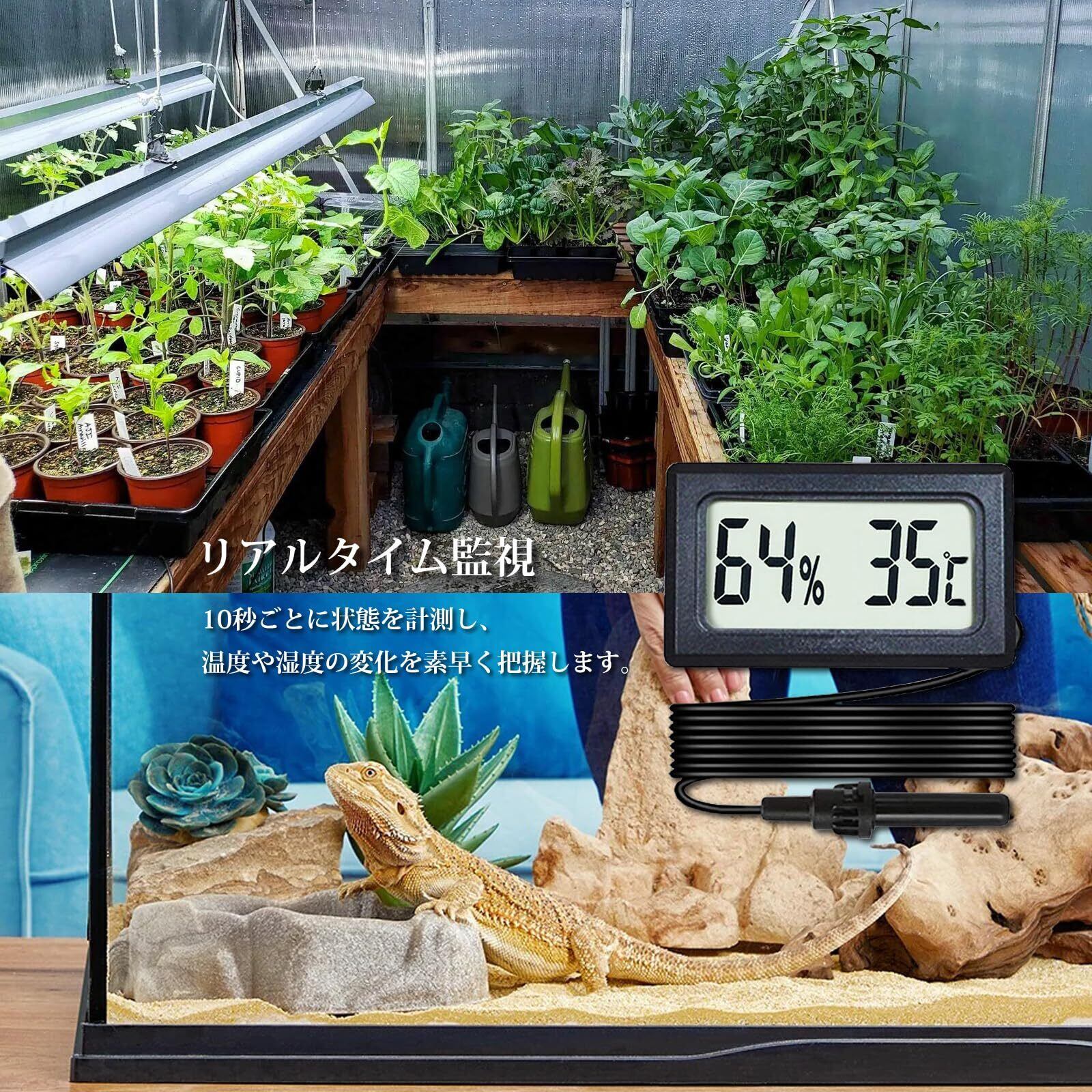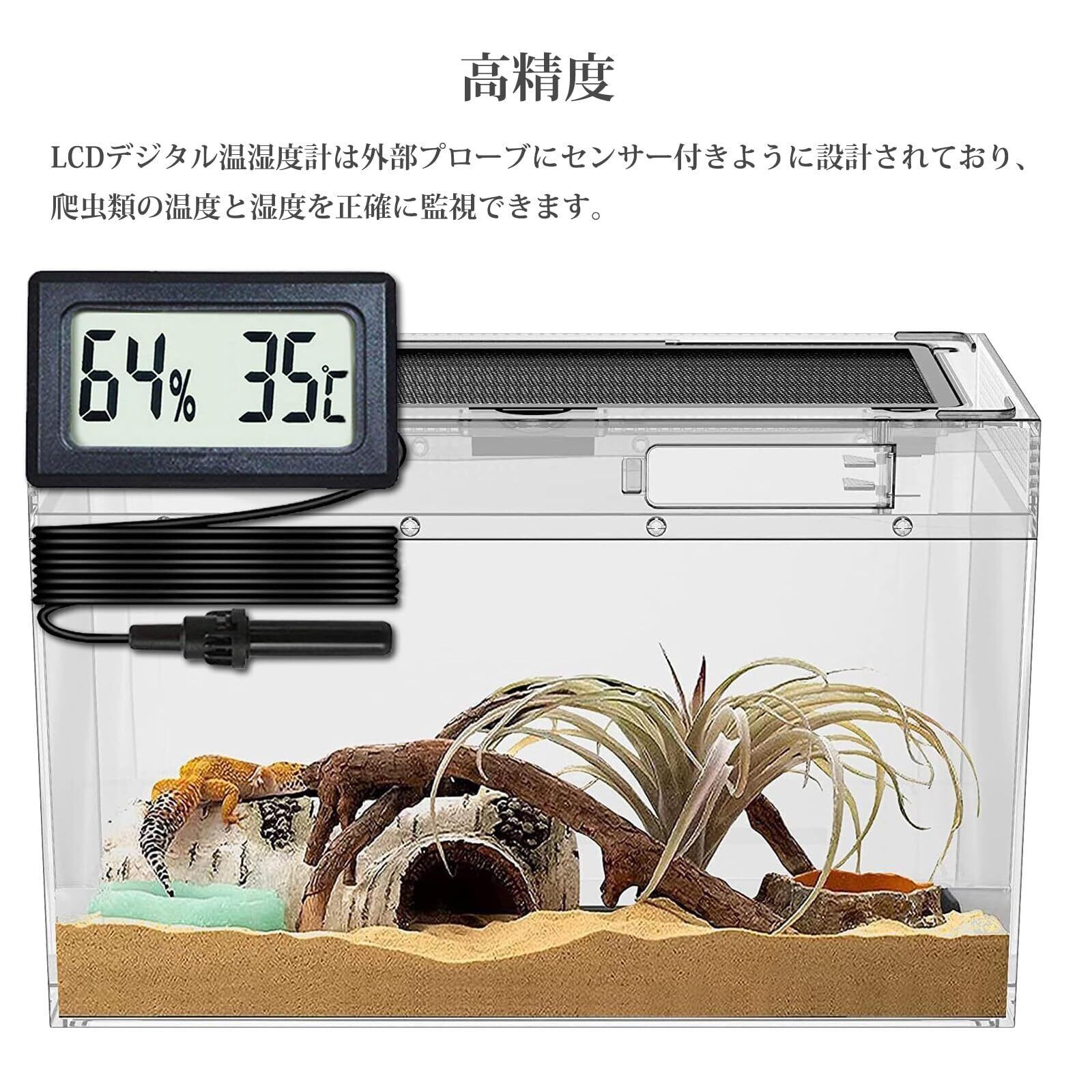 ️【高精度デジタル温湿度計】温度と湿度を正確に読み取るように設計されており、爬虫類や植物のテラリウム、ヒュミドール、インキュベーター、温室、その他のペット動物の用途に最適です。 ご注意: このプローブセンサーは耐水性ではないため、水槽内では使用できません。