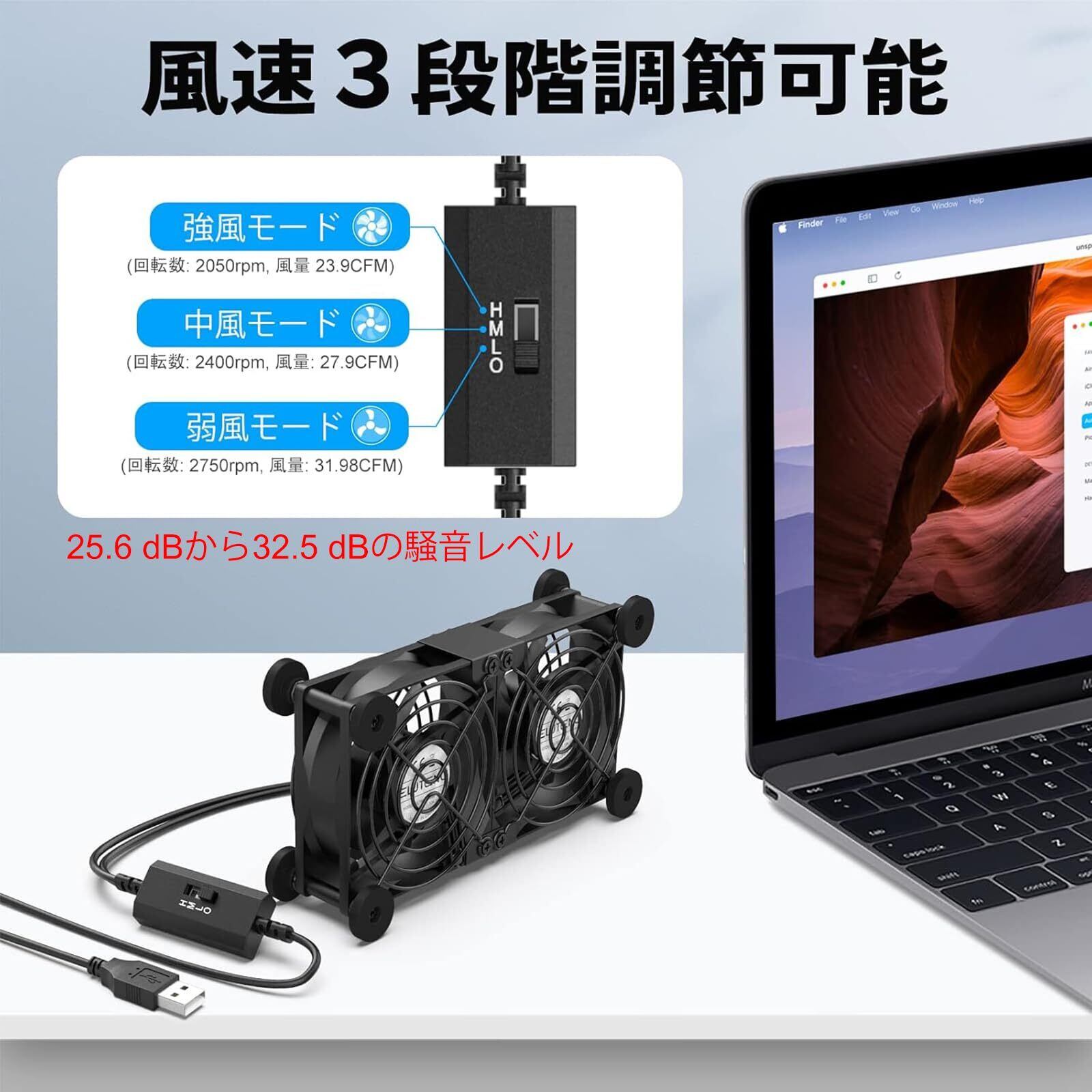 ELUTENG USBファン 8cm 2連 冷却ファン 緩衝パッド付き 静音 扇風機 横置き可 3段階風量調節 強力 長持ち玉軸受 冷却クーラー 薄型 送風機 長寿命 5V ダブル 2750RPM × 2 小型 PC/PS5 / PS4 / ノートパソコン/ルーター/水槽など Dual USB fan 8cm