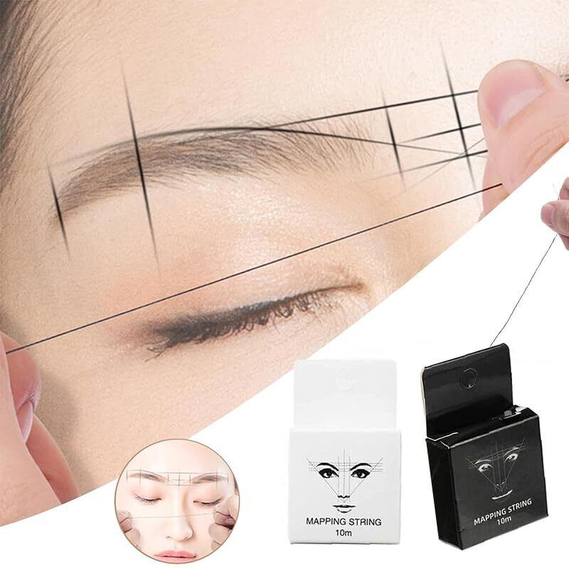 眉毛ストリングマッピング - タトゥーアイブロウルーラー、ブラウンアイブロウマッピング | 対称ガイドツール、マッピングスレッド、精密眉マッピングツール、完璧な眉毛アライメントのためのインクストリング(白線)