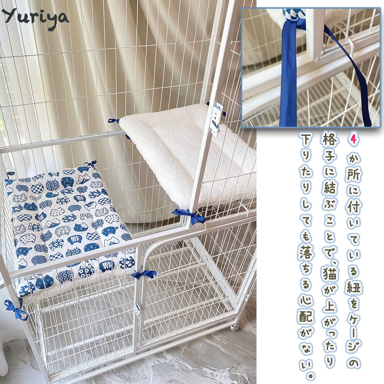 【ケージに結ぶだけでズレない!】ひも付きふわふわスクエア型ペットマットで、お留守番中もケージやサークルの中でまったり過ごします紐が4か所付いているので、ケージや椅子などにしっかり結んで固定でき、安定感の良いマットタイプです。にゃんこが上がったり下りたりしても落ちる心配がないので安心。キャンバス生地なので、爪も引っかかりにくい、耐久性にも優れています。