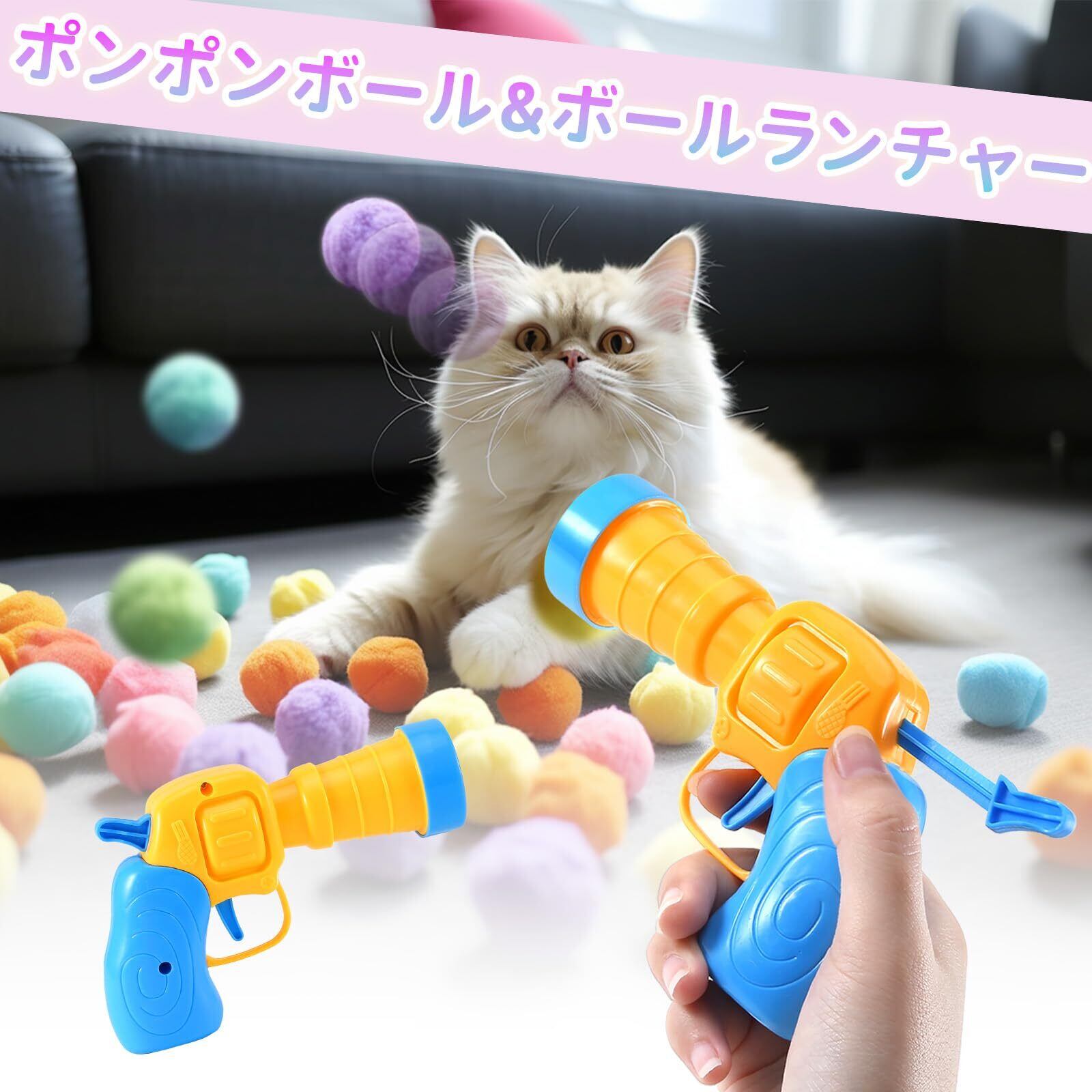 「1丁のボールランチャー」1丁のボールランチャーがセットになり、広い範囲でボールを飛ばすことができ、猫とのインタラクティブなプレイを提供。これにより、猫のエネルギーを解放させ、同時に飼い主も一緒に楽しむことができます。