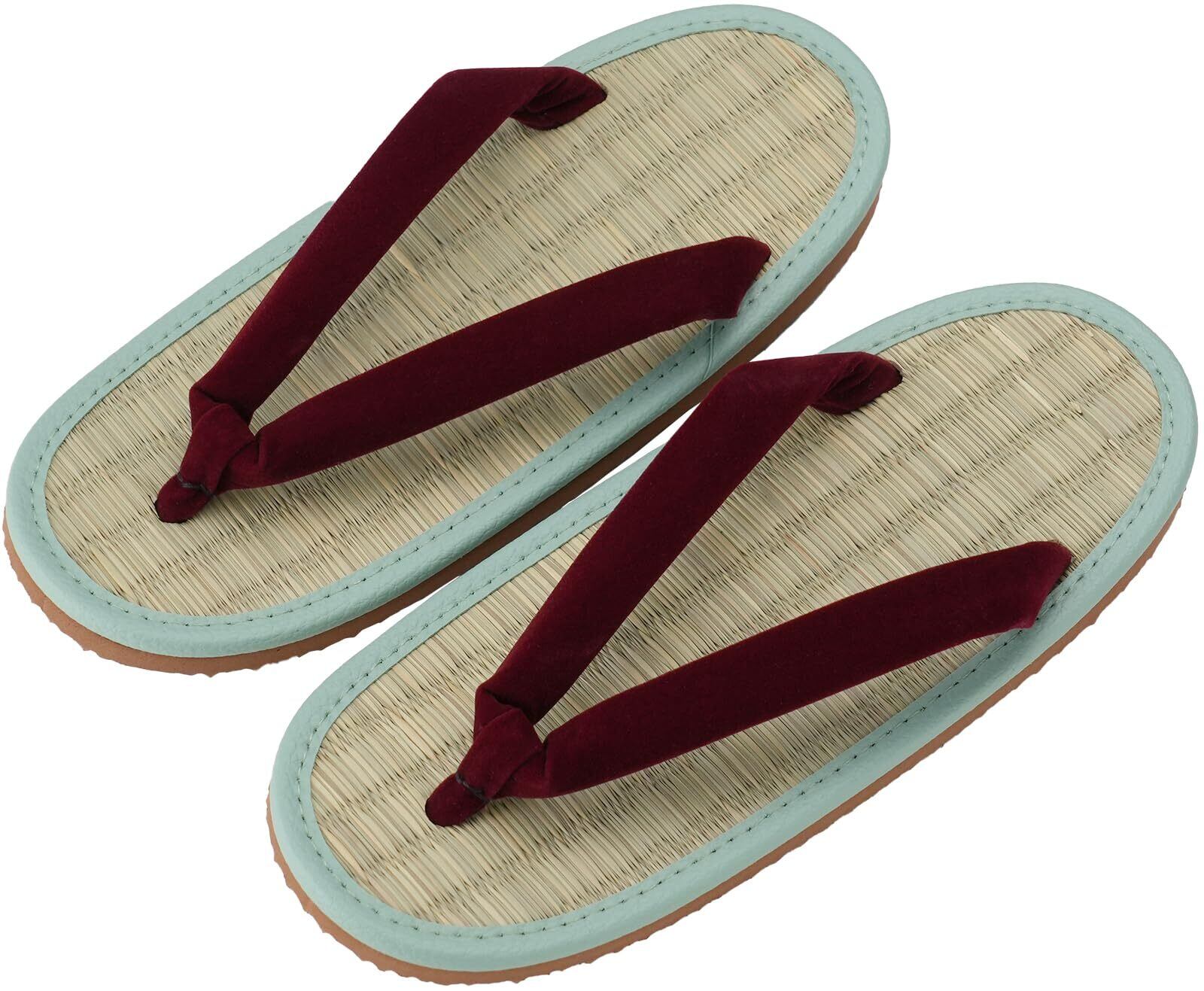 素材・材質:鼻緒/(基布)レーヨン・(フロッキー)ナイロン、鼻緒芯(紐)/ポリプロピレン・ナイロン・ポリエステル、中底(上部)/天然い草、底材/ゴム底、パイピング部/PVC
