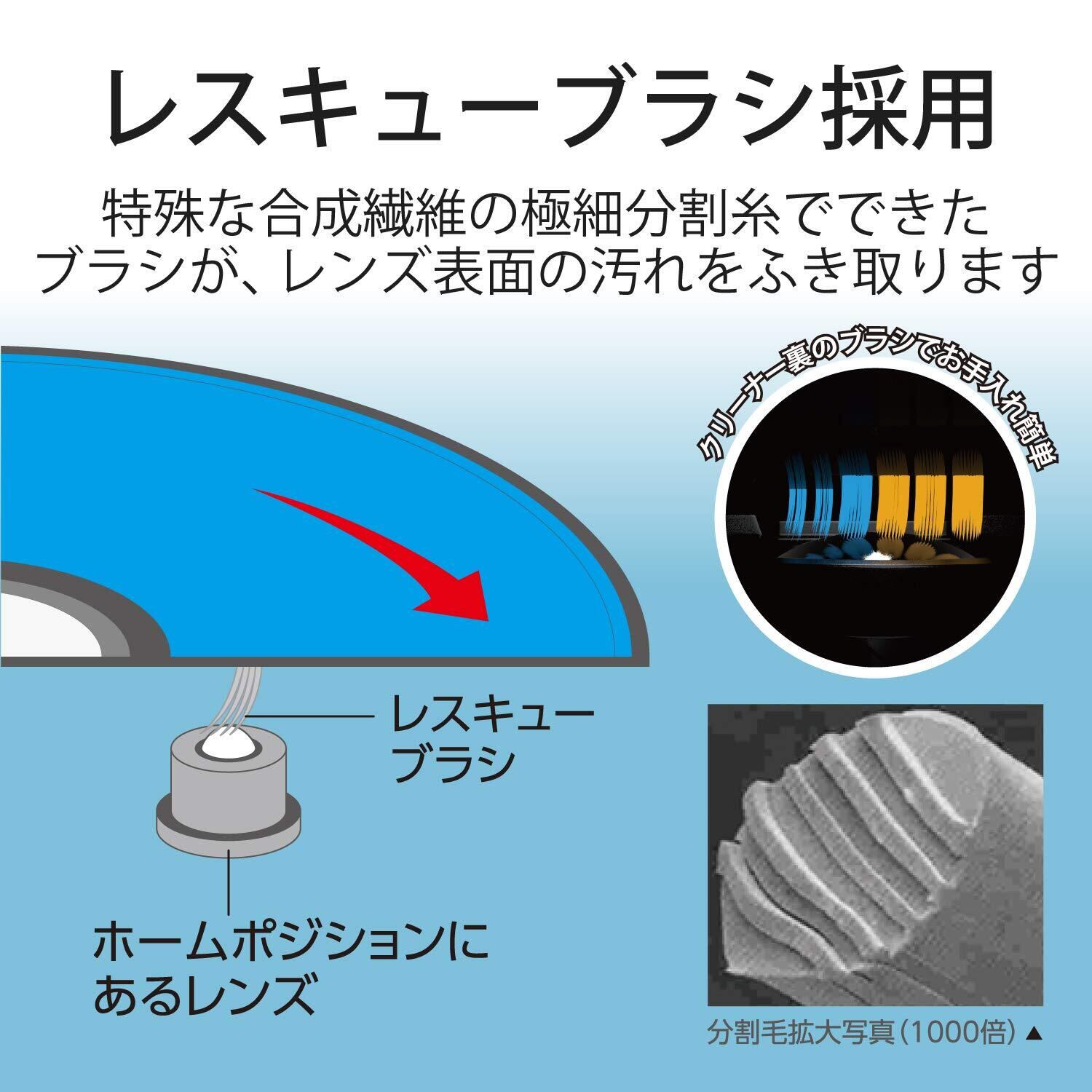 レスキューブラシ採用!ディスクをセットした後のディスク検知時の数回転を利用してレンズをクリーニングできるよう設計されたブラシです。ディスクを認識しないドライブで、ディスクを読み込むきっかけを作ります。