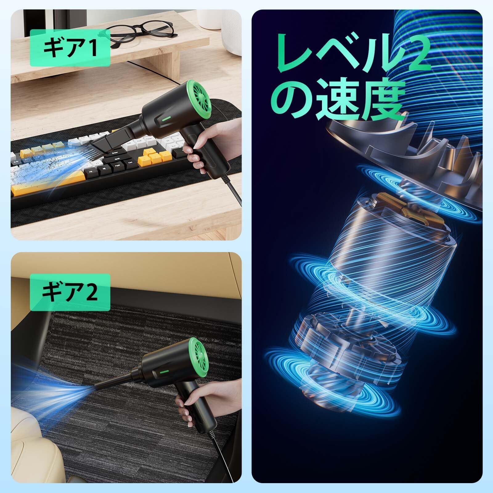 電動エアダスター - エアブロワー - キーボード用多目的圧縮空気ダスター - コンピュータとPC - 163g強力なモーター(緑)