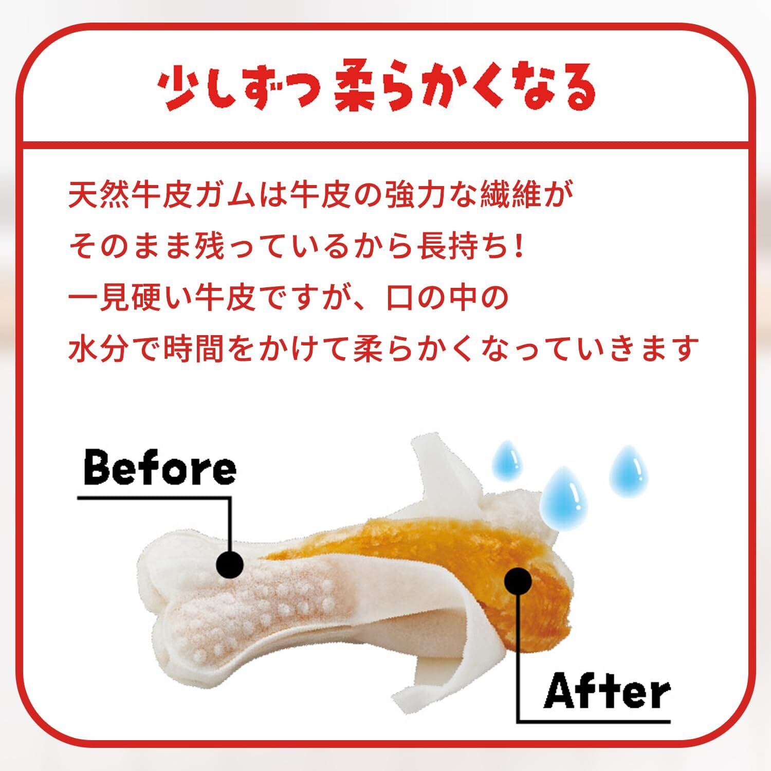 天然牛皮ガム&ササミ ギュっと圧縮 超長持ち ・天然牛皮は牛皮の強力な繊維がそのまま残っているから長持ち!さらに、噛んでいるうちに口の中の水分で柔らかくなっていくから硬すぎない。 ・ササミを牛皮の中に入れ、ギュっと圧縮したプレスガム。表面の凸凹で滑りにくく持ちやすい。 ・硬さレベル:4(とても硬い) ・保存料・着色料・香料・発色剤 無添加 ・オリゴ糖 配合 ・農水省認定工場製造