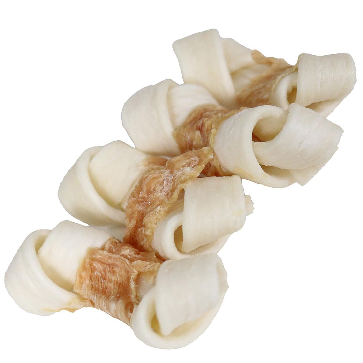 ●天然牛皮を原料に使った小さな骨型ガムに鶏むね肉を巻きつけたおいしいガム。