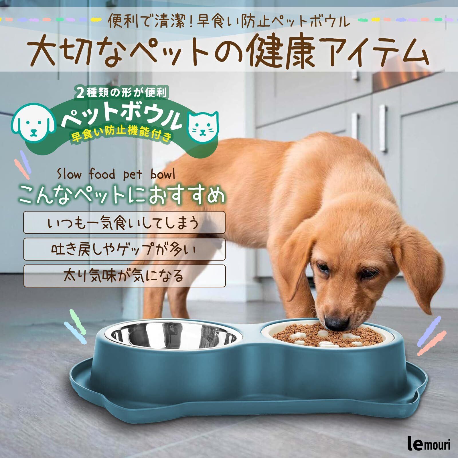 「食べる楽しみ、もっとゆっくり」 愛犬・愛猫のごはんタイム、たった1分で終わってませんか? lemouriの凹凸構造は、自然とスピードを落とし、しっかり噛む癖をサポート。胃腸にやさしく、吐き戻しや喉詰まりのリスクも軽減。あなたの”心配”を”安心”に変える器です。