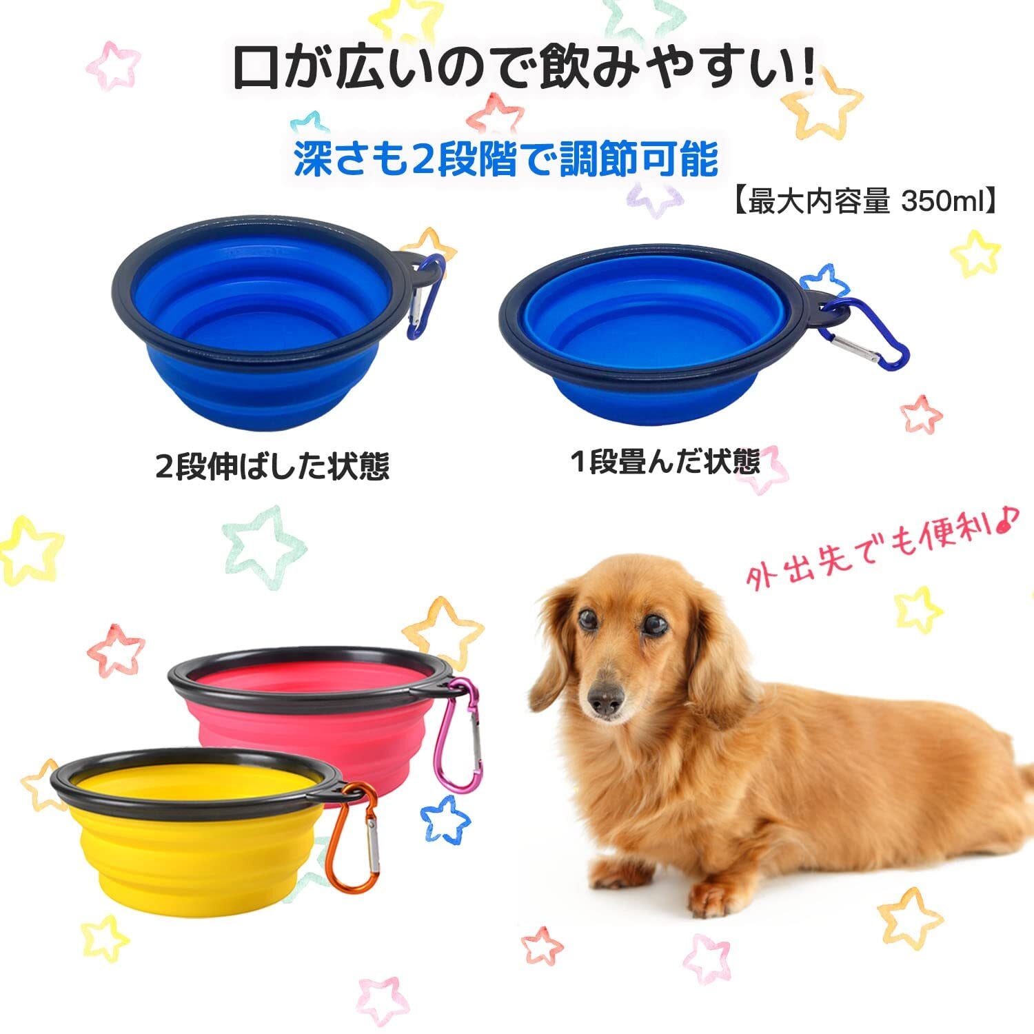 【商品仕様】商品内容:ペットボウル2個セット。カラー:レッド&オレンジ、ピンク&イエロー、ブルー&グリーン。サイズ:直径13㎝、高さ(組み立て時)5.5㎝(収納時)1㎝。モニターなど環境により画像と若干見え方が違う場合がございます。