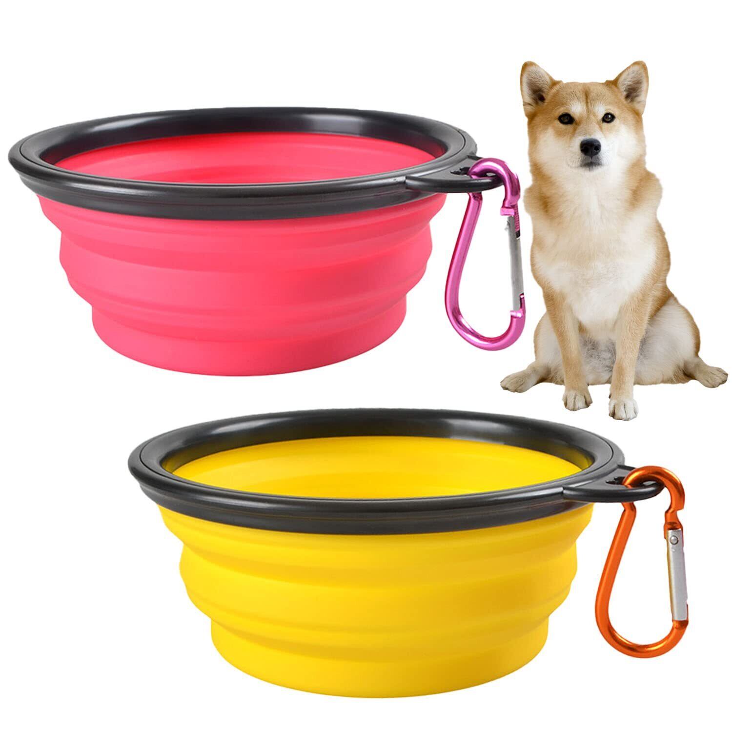 【折り畳み式】 ペットボウル 折り畳み 350ml 2個セット 折りたたみ 皿 食器 コンパクト 携帯 ドッグラン 犬 猫 シリコン 【coco plazaオリジナルパッケージ】 (ピンク&イエロー)