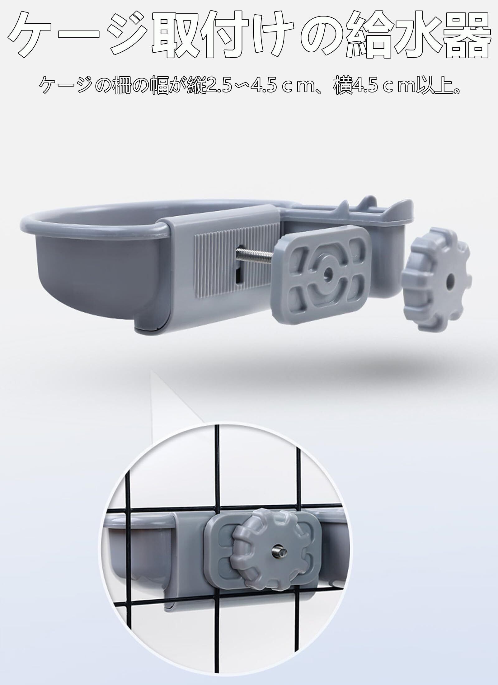 【取り付けは簡単で】ネジを回して猫のケージ取付けの給水器。幅広いゲージにも対応出来る仕様と安定感があります。転倒防止設計で、水がこぼれにくい。犬 給水器 ケージ用猫 給水器 ケージ用で、ペットが自由に水を飲むことができる。