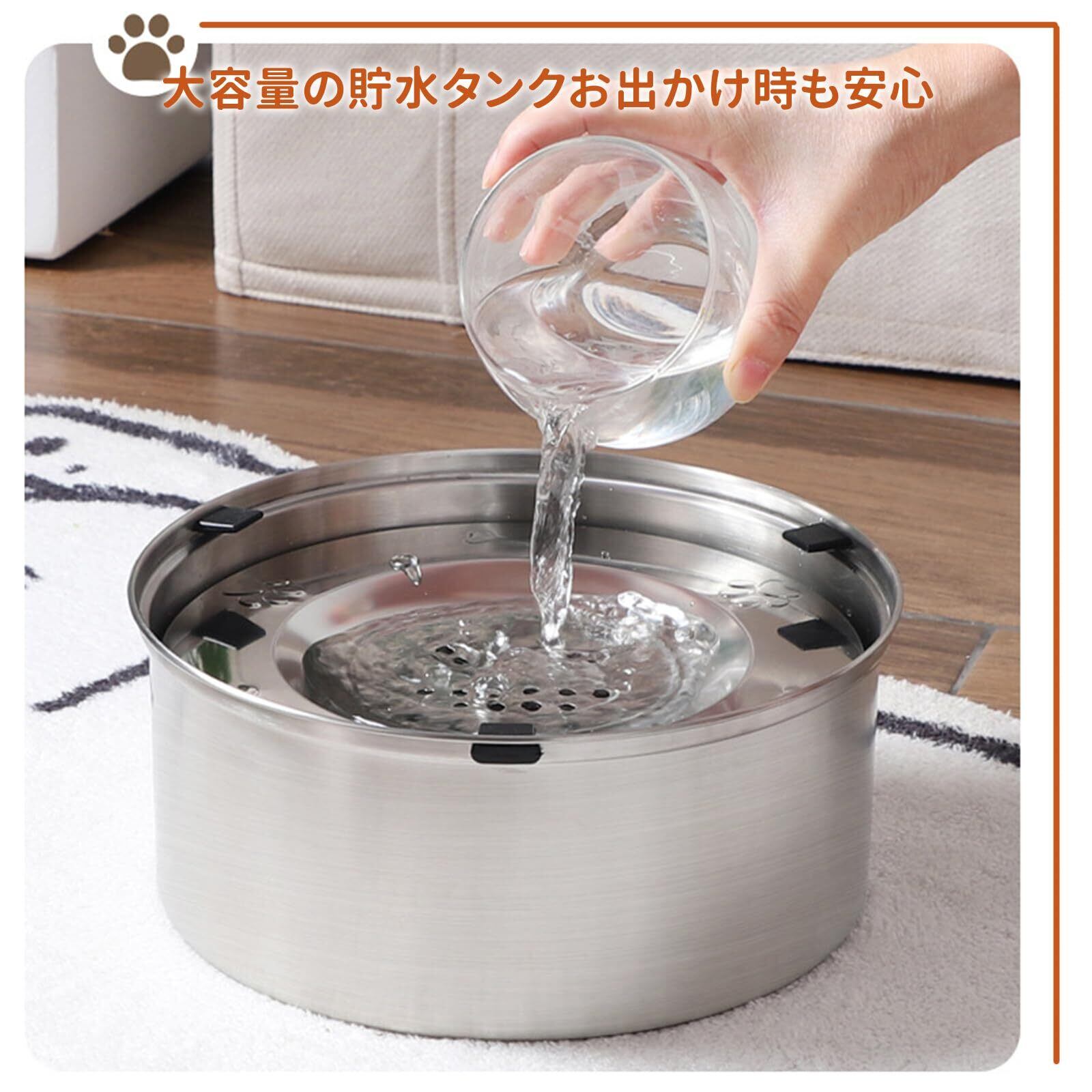【水の清潔を保ちやすい】蓋が水をカバーしているのでゴミ・ほこり・ペットの毛などが水に入りにくい。汚れによる水交換の回数を減らせます。