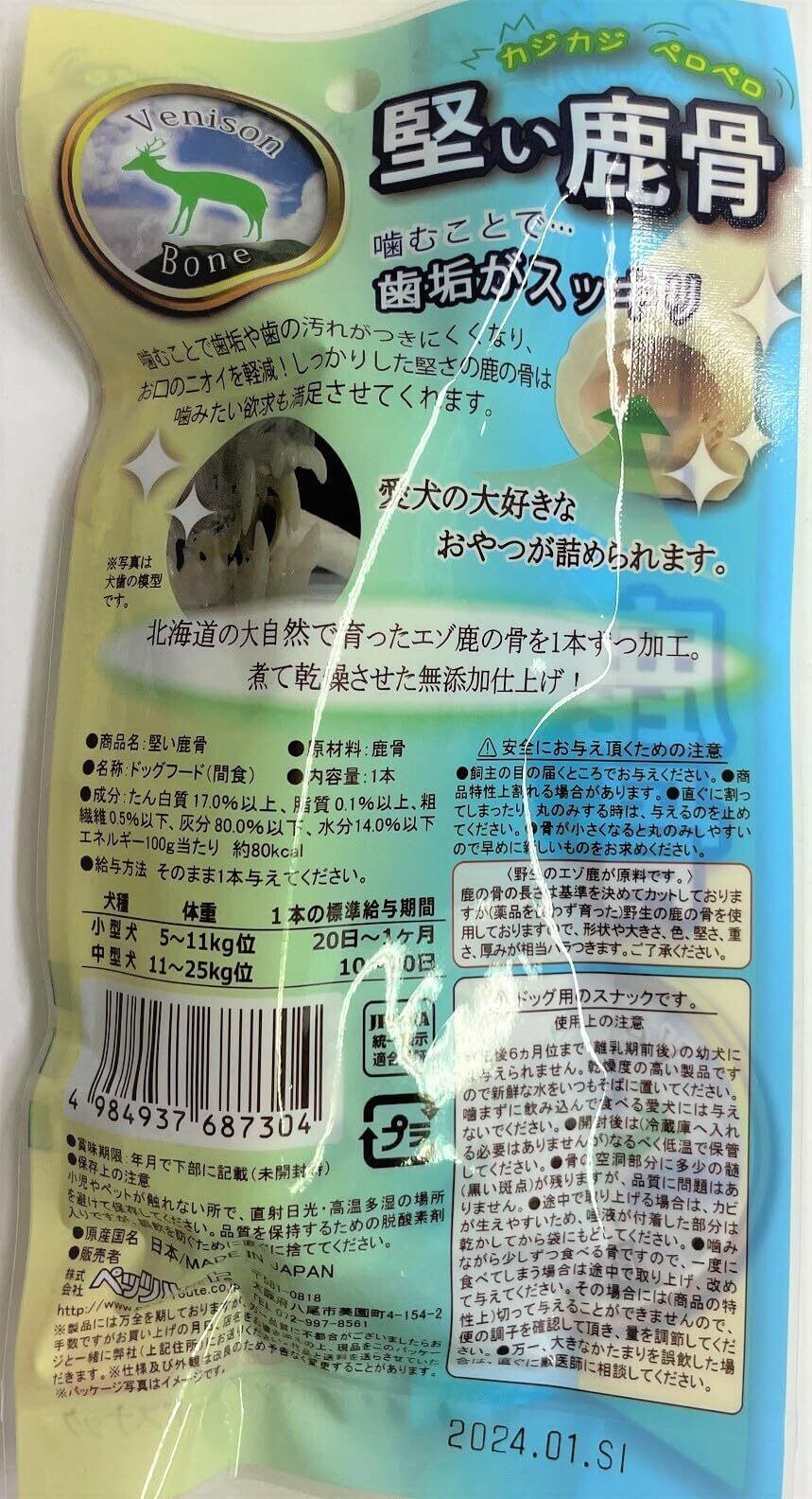 北海道の自然の恵みで育ったエゾ鹿の骨を無添加で一本ずつ加工しました。噛むことで歯の汚れを落とし、本能を刺激しながら食べられます。