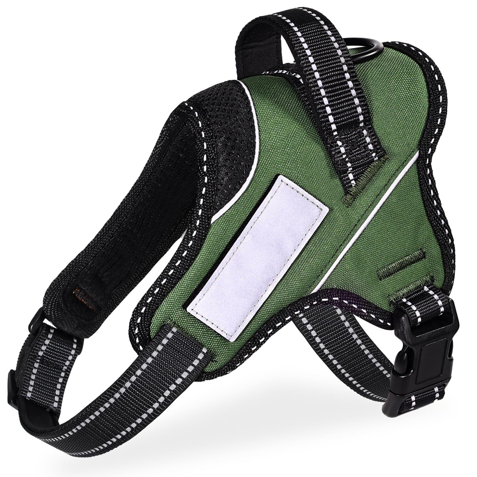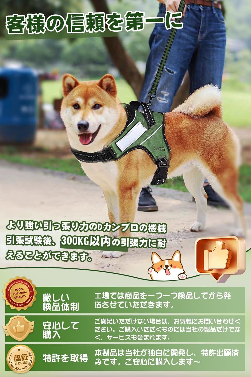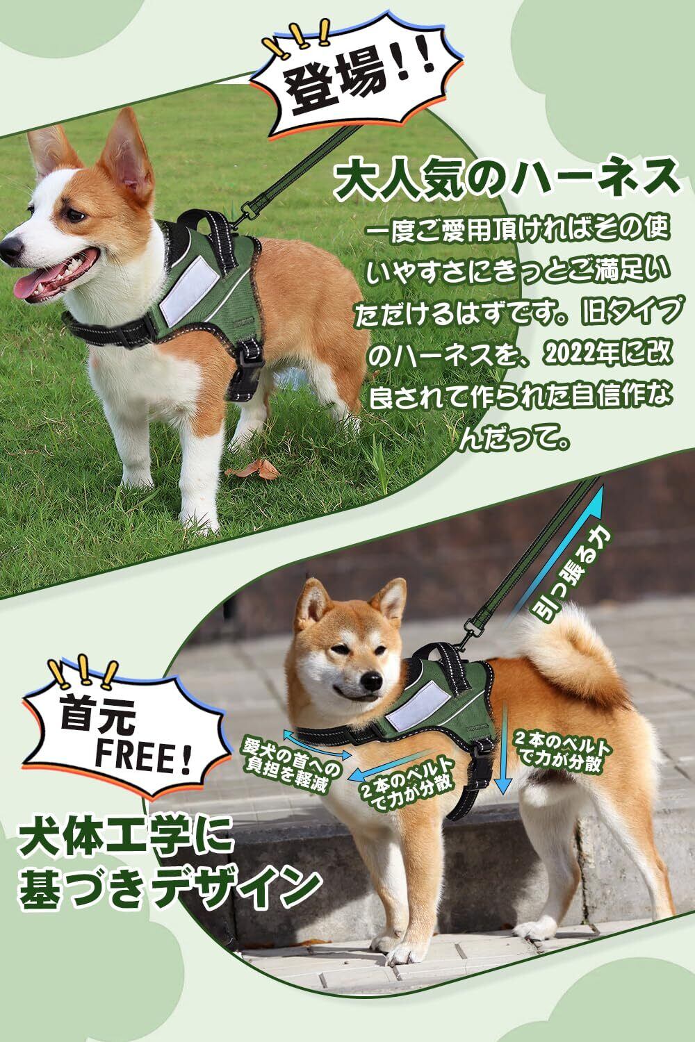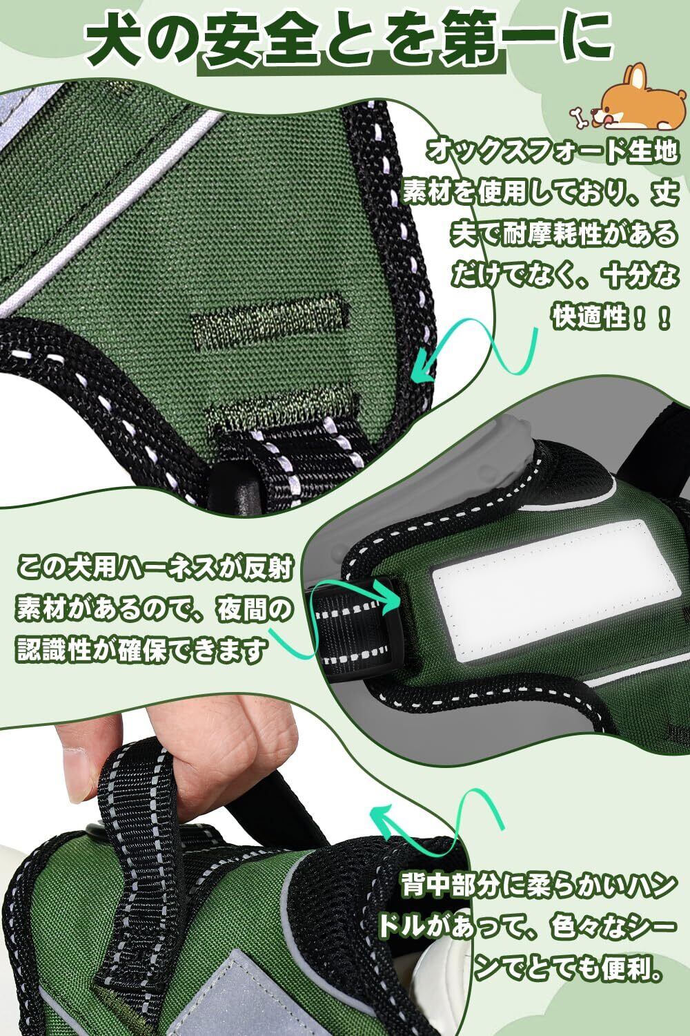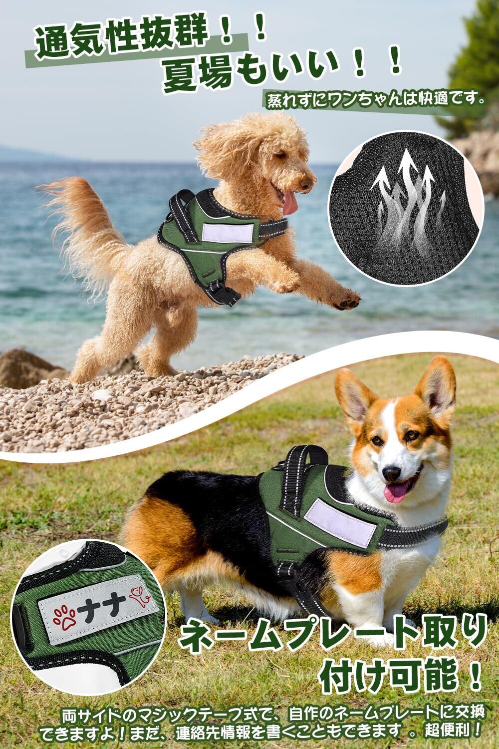 【ドッグトレーナー推薦】OGURIYA犬 ハーネス 喉に優しい 小型犬 中型犬 大型犬 着脱簡単 超可愛い色 ネームプレート 夜間反射 サイズ調整可能 犬体工学に基づいた 7色選択(アーミーグリーン,S)