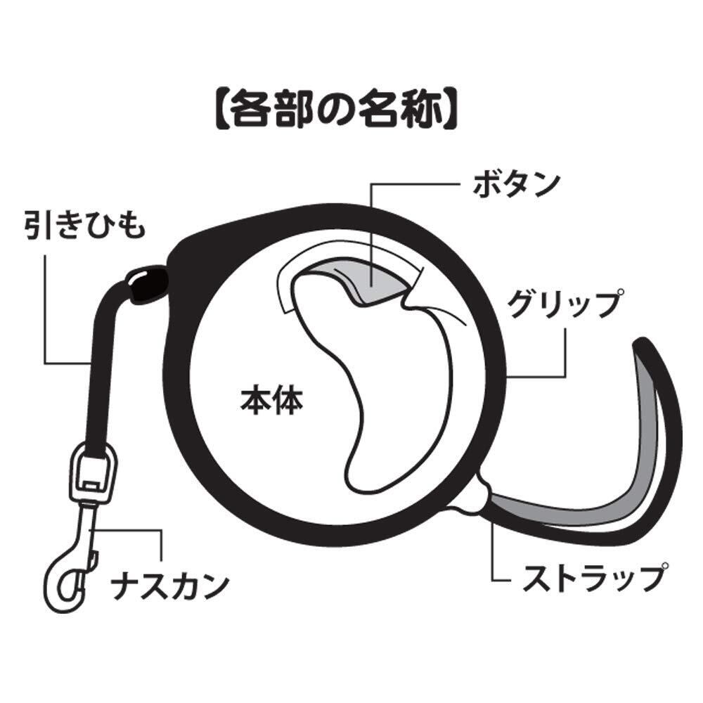 ・本品は消耗品です。使用前・使用中は常に本品の状態と装着・連結具合をよく点検(特に引きひも部分は念入りに)してください。傷み・キズ・サビなどが目立つ場合は使用を中止し、新しい伸縮リードに取り替えてください。※取り替え時期は使用状況により異なりますので、お客様の細かな点検をお願いします。