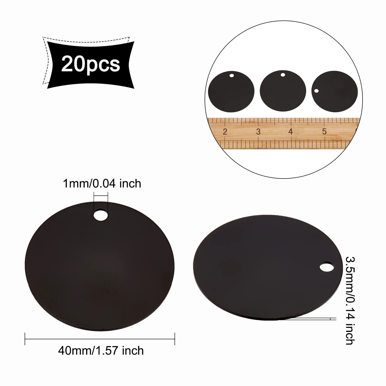 BENECREAT 20枚直径40mm アルミ札 黒色 円形 ネームタグ トラベルバッグタグ DIYブランクアルミ札 迷子札 猫犬 首輪用 IDタグ 刻印 名入れ DIY工芸品札