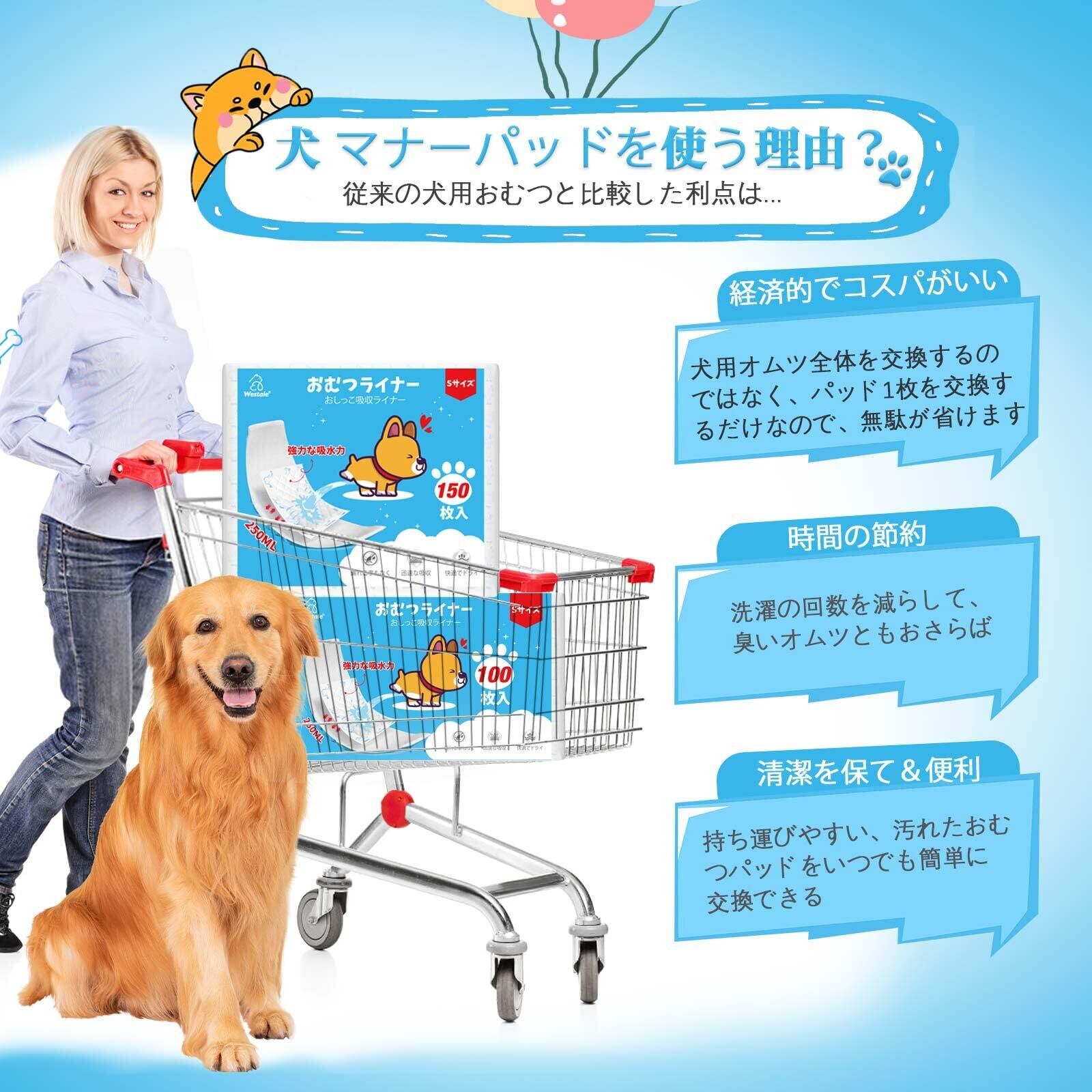 犬用おむつライナー 150枚入 高吸収性能 ずれない 犬 オムツ 男の子 女の子兼用マナーベルトパッド 横漏れ対策 老犬介護 マーキング防止 ペット用おしっこ吸収シート、 Sサイズ