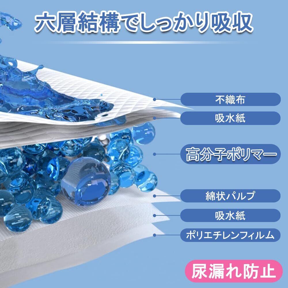 【裏漏れの心配不要】高分子吸収材でおしっこが漏れにくい、また、裏面の防水シートが床への染み出しをしっかりガード!