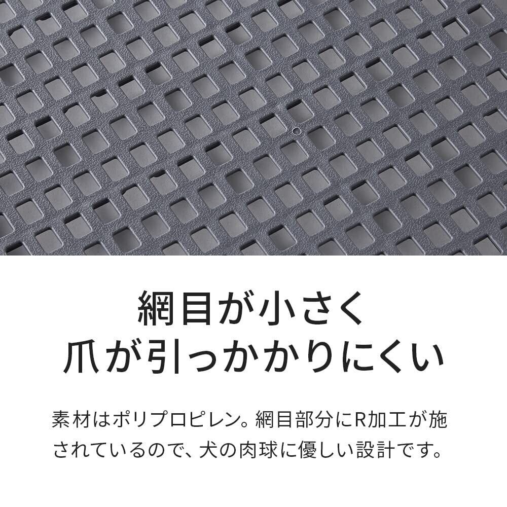 素材はポリプロピレン。網目部分にR加工が施されているので、犬の肉球に優しい設計です。