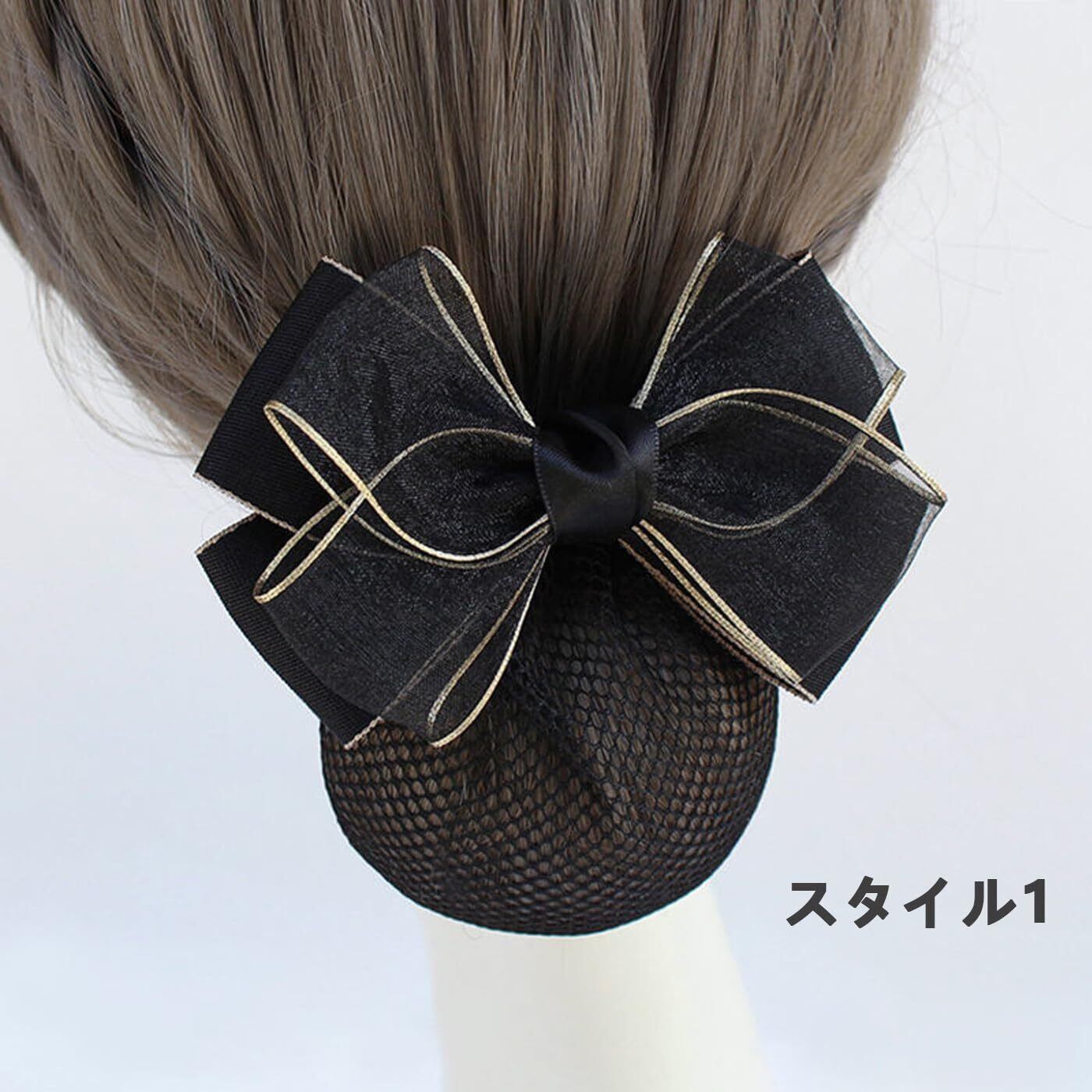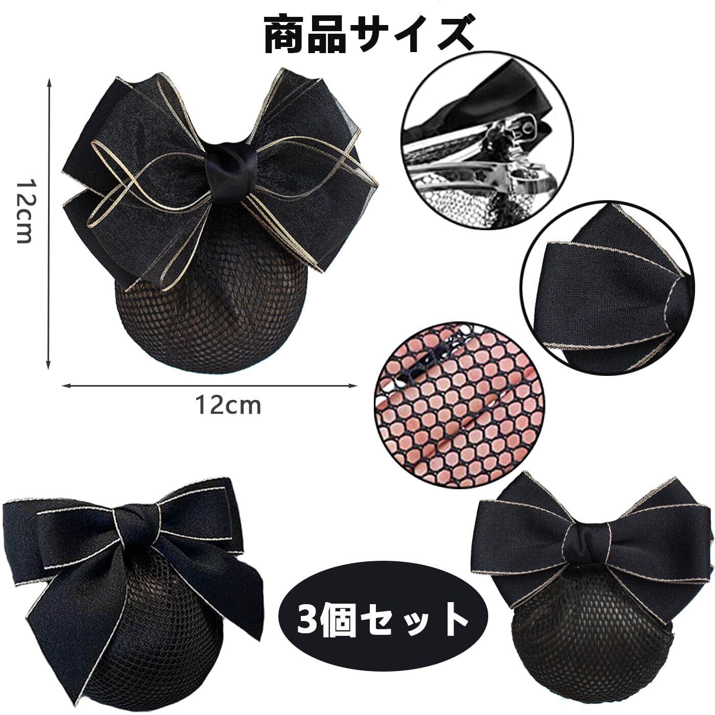 3個セット シニヨンネット バレッタ ネット付き,BetterJonny リボン付きネット ヘアネットリボン おだんご ネット 髪 お団子ネット 髪 ネット 黒 大きめ おしゃれ かわいい レディースヘアアクセサリー 黒 ブラック リボン