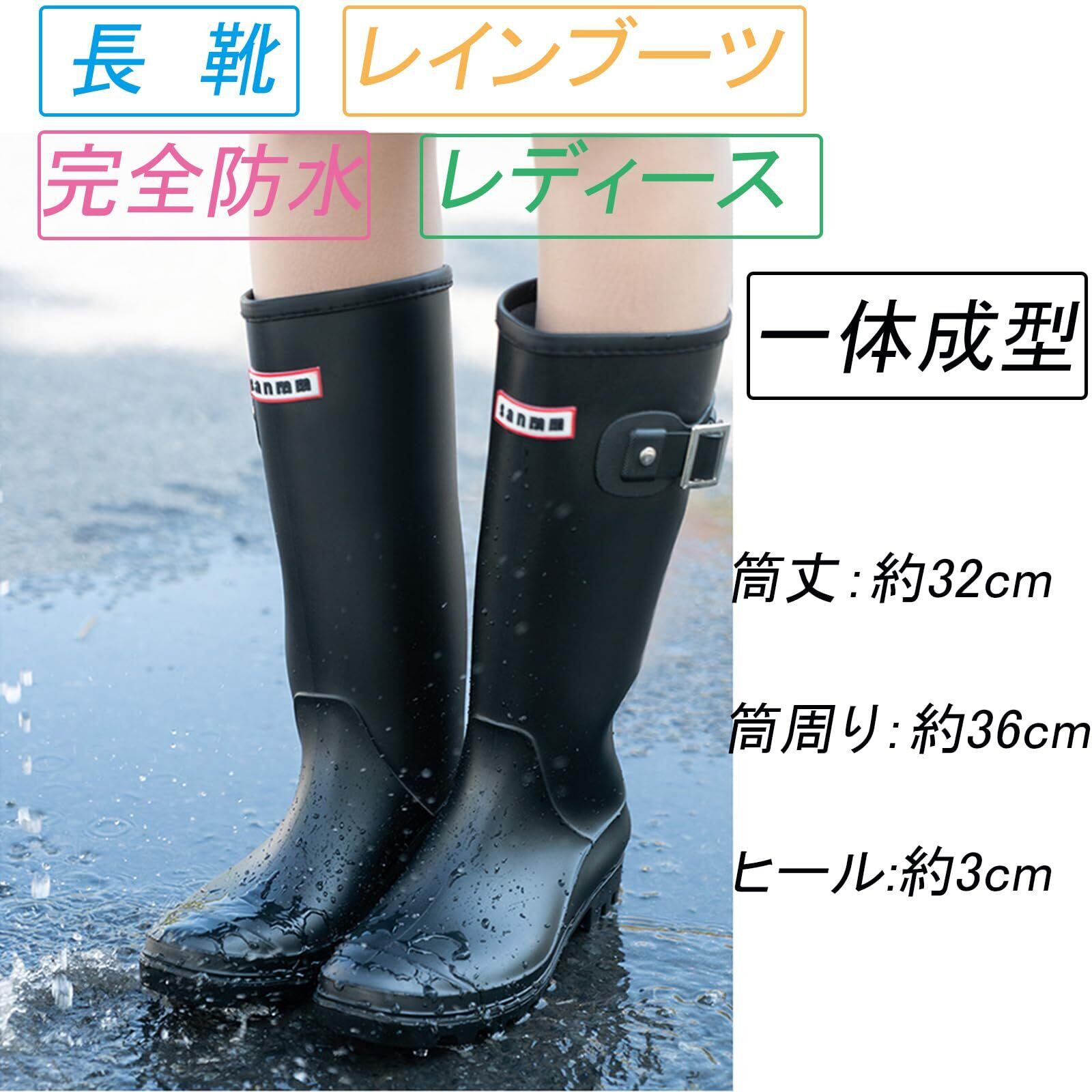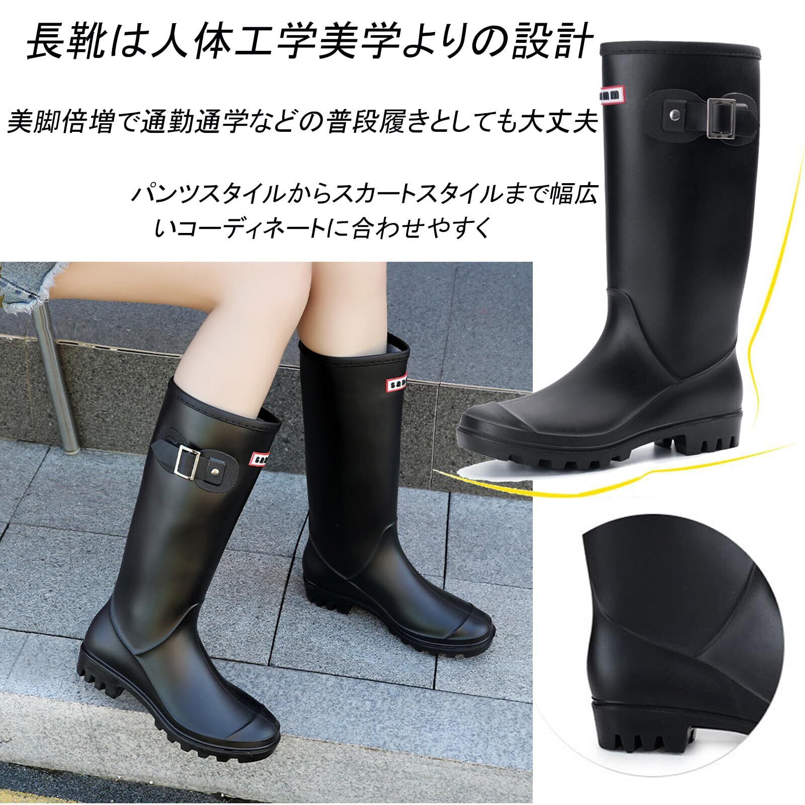 【完全防水】Lvptsh 長靴 レディースはPVC一体成型の防水素材を使用しているため、アッパーとソールが隙間ゼロ、完全に防水を実現できる。